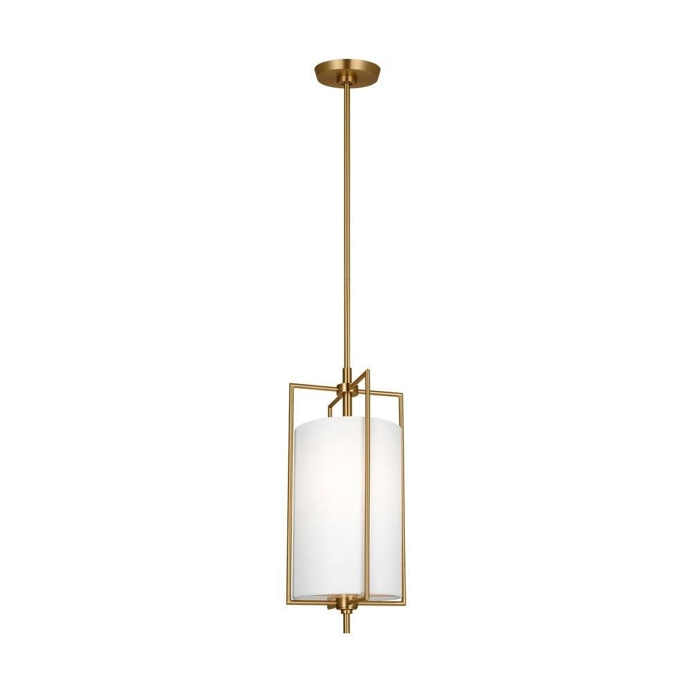 The Perno one-light shade pendant in Aged Iron by Chapman and Myers was inspired by a vintage mid-century French sconce with a simple metal armature. The minimal cruciform structure of the metal frame is the main feature of the design. The frame outlines and supports the inner cylindrical shade. All of the assembly hardware for installing the inner shade was engineered to be hidden in order to maintain the clean and simple aesthetic of the light. Product Features and Benefits