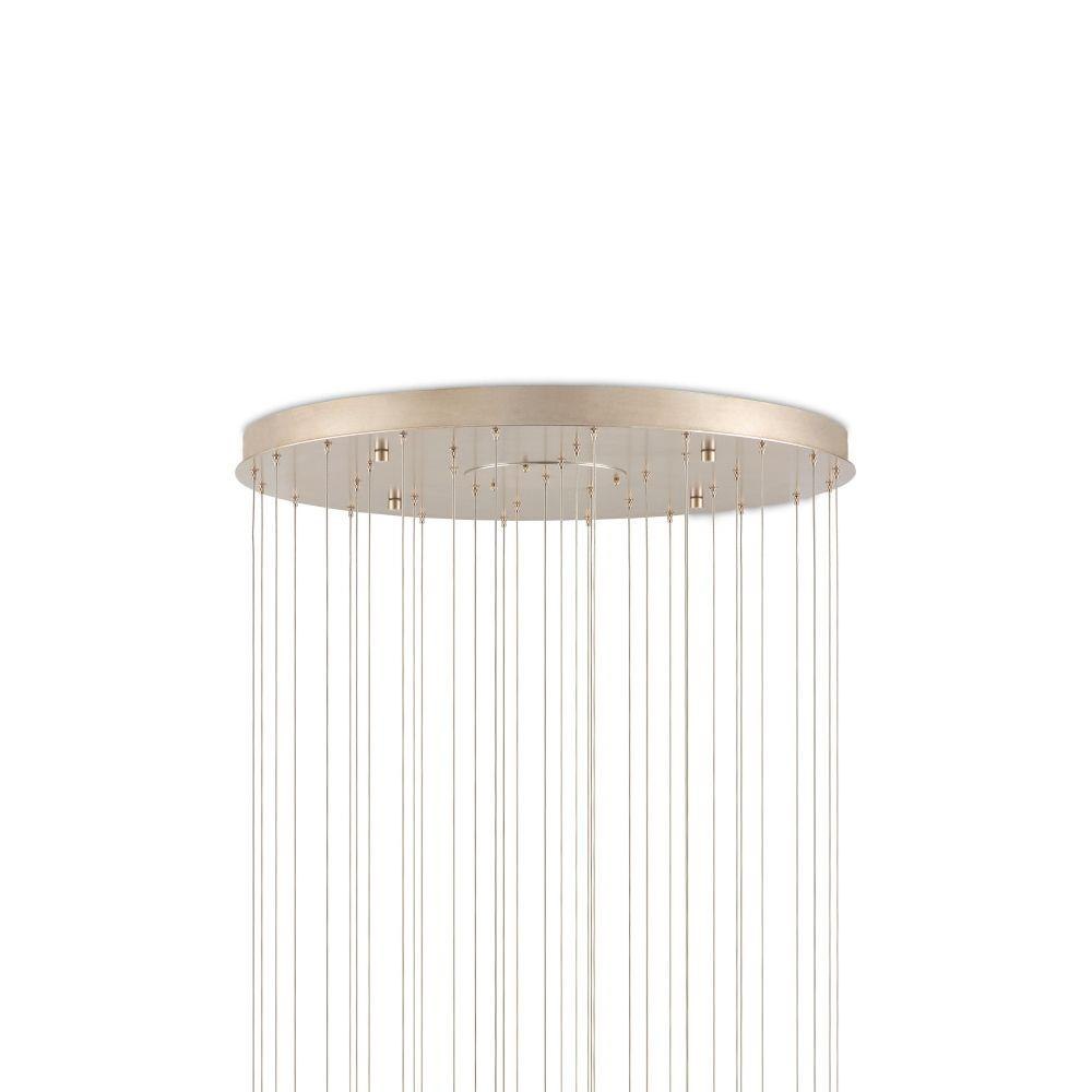 The Medusa 36-Light Multi-Drop Pendant effervesces with echoes of the deep sea. Beads cascading from its dimpled shades in a nickel finish mimic the profile of a jellyfish, one of nature's most mysterious creatures. The beads are threaded by hand and the cap is hand-punched, a mix of tasks that are painstakingly involved. These highlight the skills of the craftspeople who make our most artful products. The beads took on added paleness once they were sandblasted before being attached. The canopy of this piece is luminous in a painted silver finish. This fixture is among Currey & Company's multi-drop pendant collection, which includes multiple configurations.
