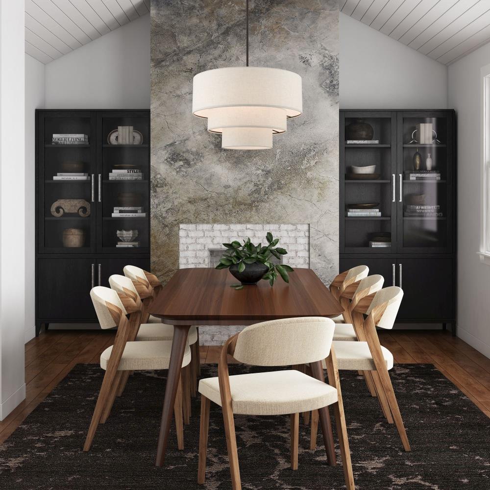 The Gladstone pendant features four incandescent bulbs, providing ample light output to brighten your environment effectively. The fixture is constructed from durable steel, ensuring long-lasting stability and quality. It is designed to be suspended via a stem hanging method, facilitating straightforward installation and secure mounting. This pendant is part of the Gladstone collection, aligning with modern and Mid-Century Modern design principles for cohesive interior styling.