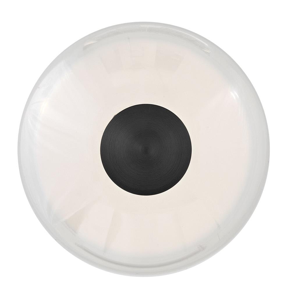 The centerpiece of Elin's bold and contemporary design is its sculpted clear glass that highlights an integrated LED inner light source. Featuring both conventional and striking elements, Elin is ideal for modern and transitional interiors and available in Black or Lacquered Brass finish options.