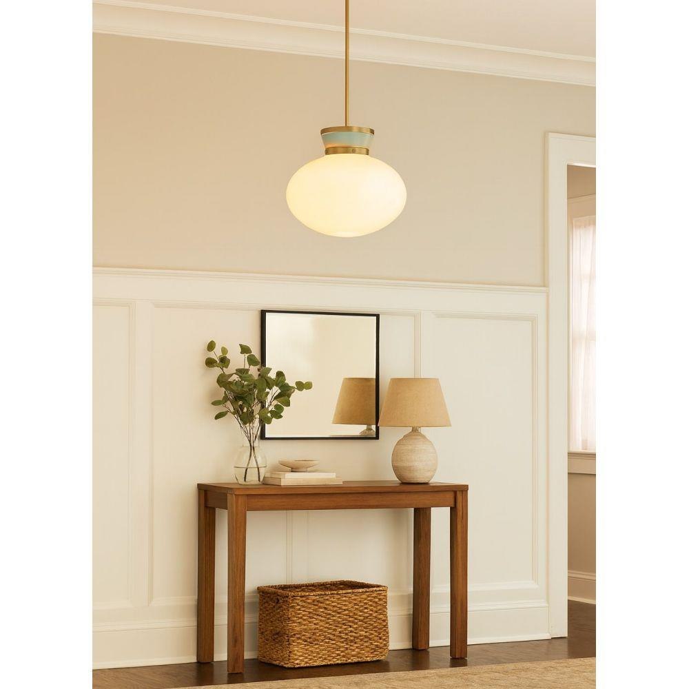 A petite beauty that packs a big punch, Lucy’s curved lines and captivating color combinations are like a whirlwind romance with classic style. The schoolhouse modern cased opal glass shade with charming accent finishes adds a touch of softness to your space.