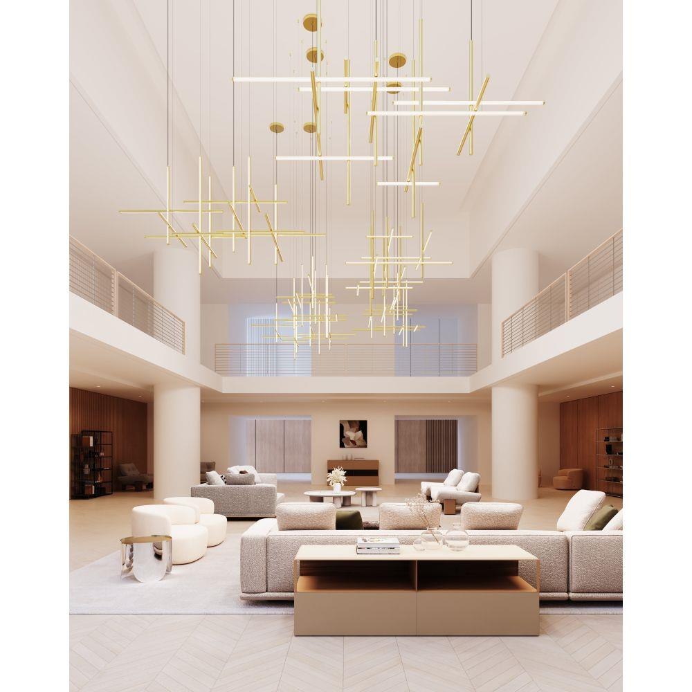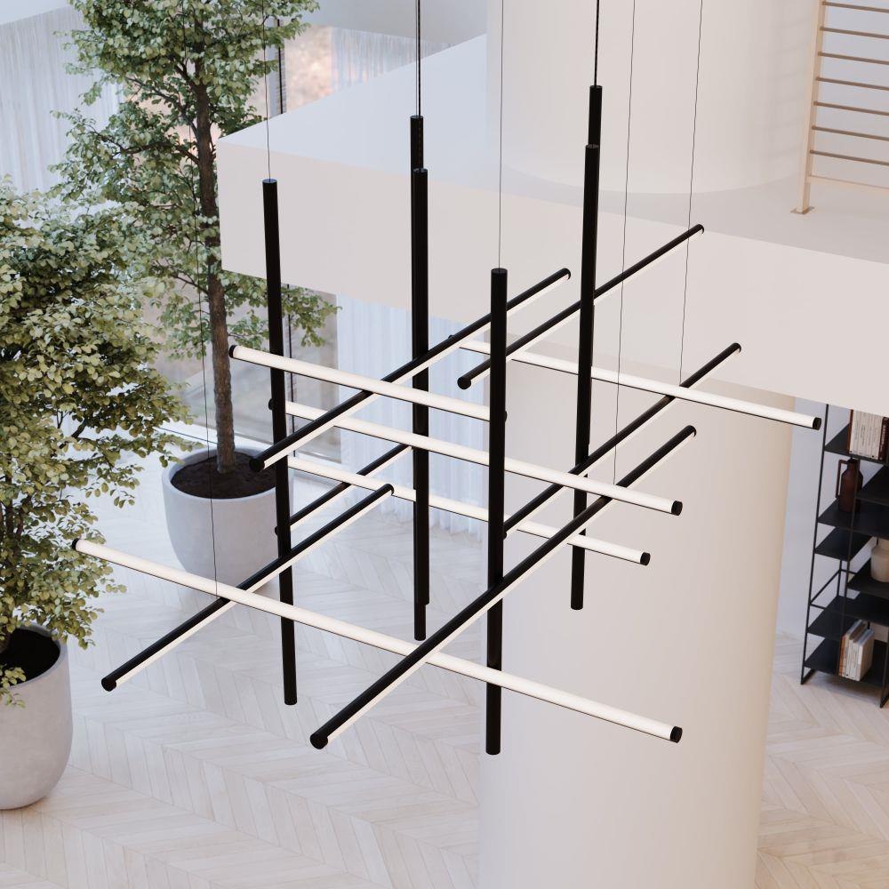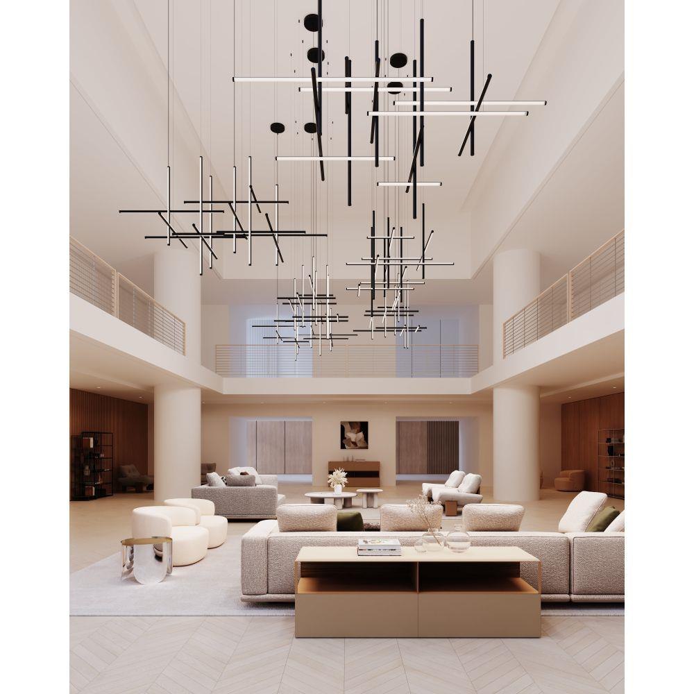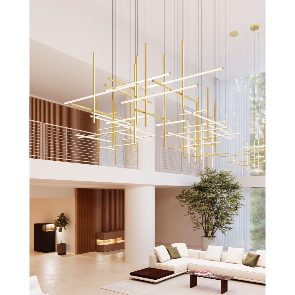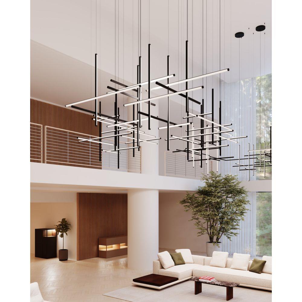 Timely and timeless, Labyrinth’s systematic structure—an intersecting tubular LED framework—creates dynamic geometric order Scaled for residential, hospitality and commercial settings for an enduring modern presence. This 2023 release is part of the Labyrinth family, which also includes the Square Chandelier.