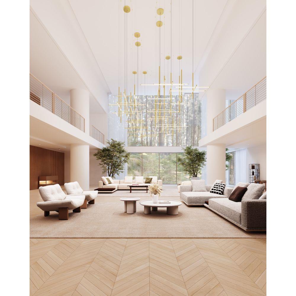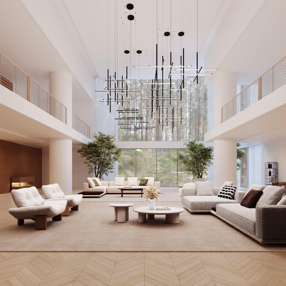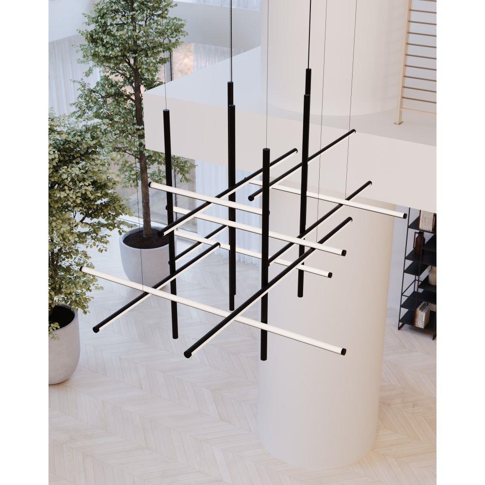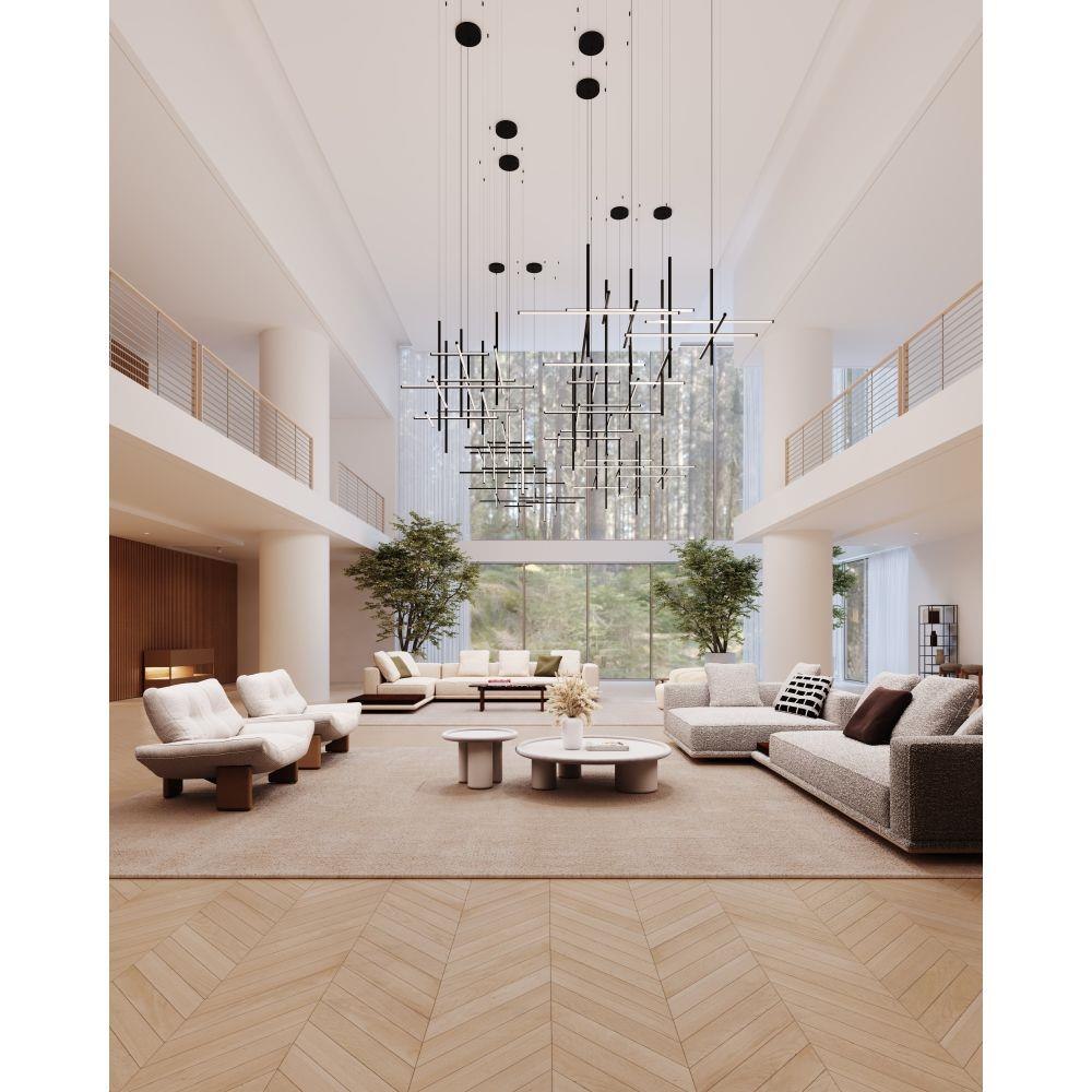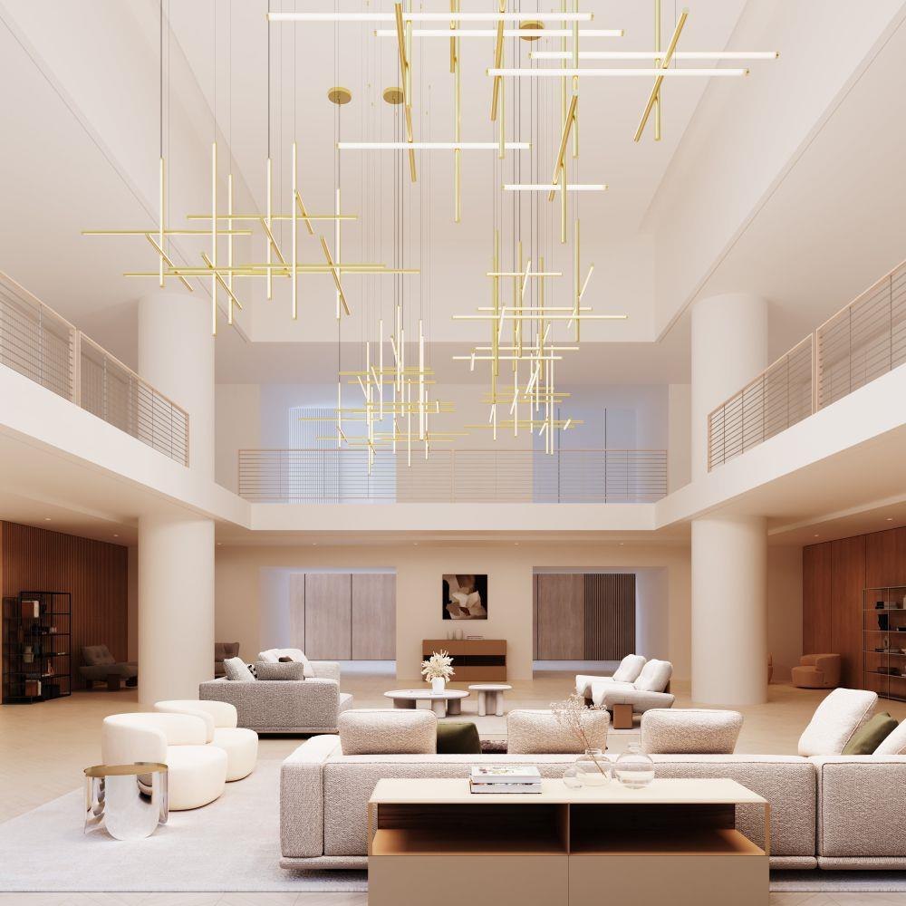 Timely and timeless, Labyrinth’s systematic structure—an intersecting tubular LED framework—creates dynamic geometric order Scaled for residential, hospitality and commercial settings for an enduring modern presence. This 2023 release is part of the Labyrinth family, which also includes the Square Chandelier.