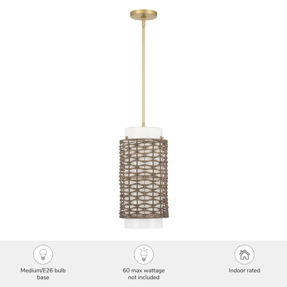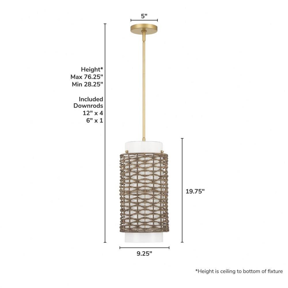 Lift your space with the Laila 1 Light Medium Pendant, where natural texture meets transitional design. This pendant features cased white glass beautifully encased in an open weave rattan pattern, blending organic warmth with modern elegance. Its airy design adds a layer of natural charm to any room, creating a soft, welcoming glow that complements both contemporary and classic interiors. Perfect for dining areas, kitchens, or cozy nooks, the Laila pendant delivers a fresh, sophisticated look with just the right touch of woven style.
