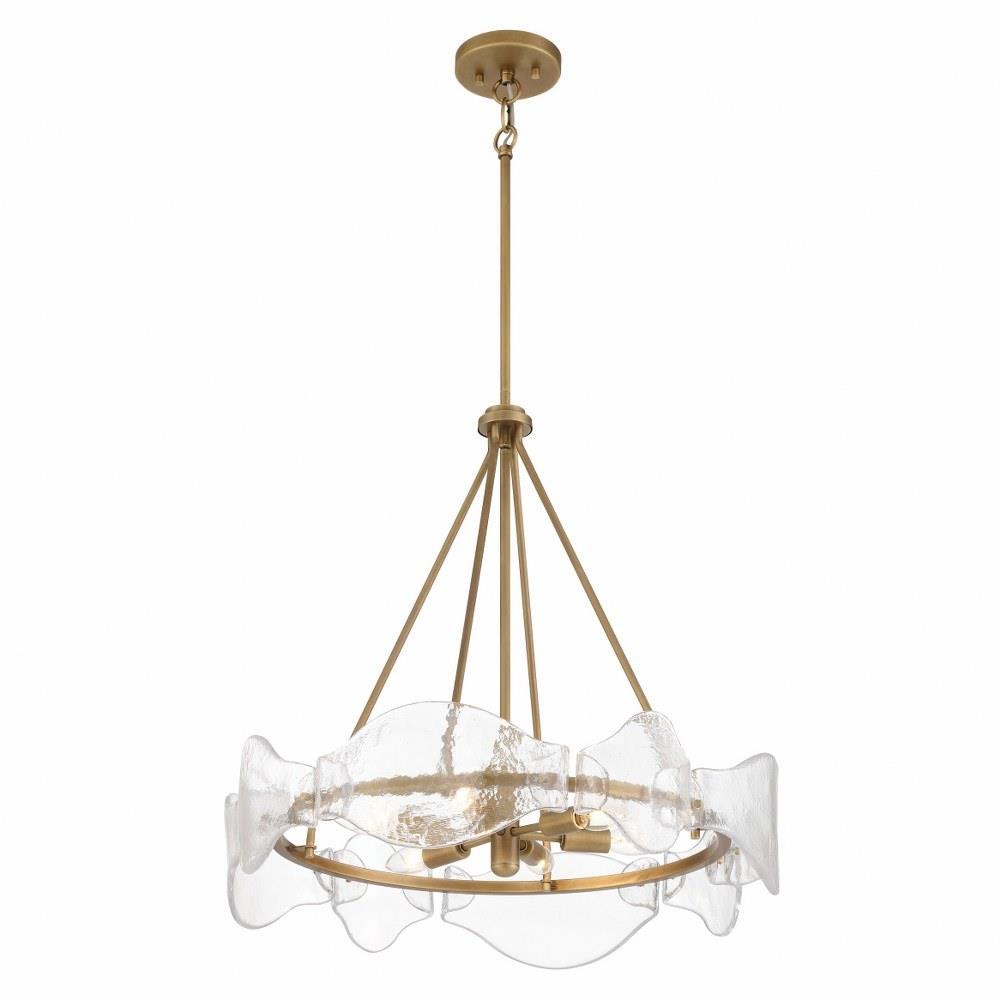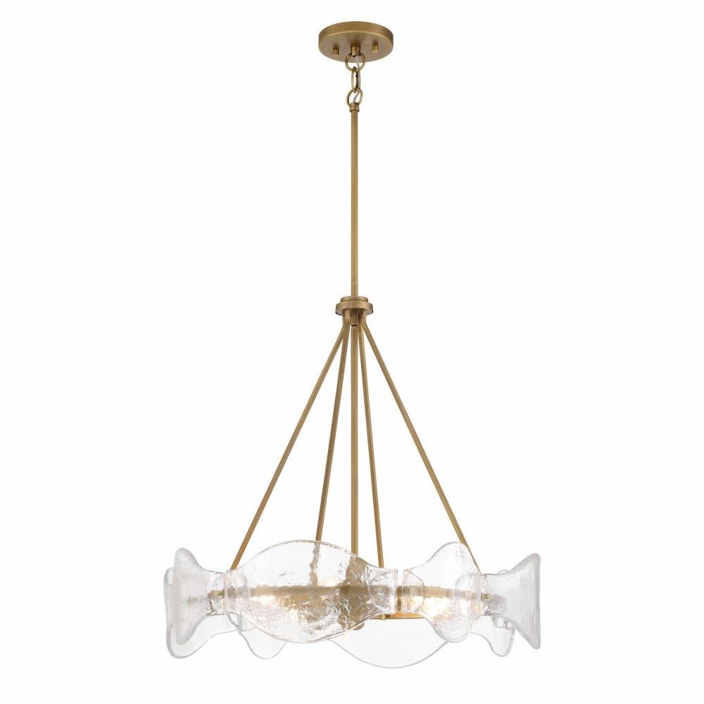 6-Light Pendant - Legacy Brass with Clear Textured Handmade Glass