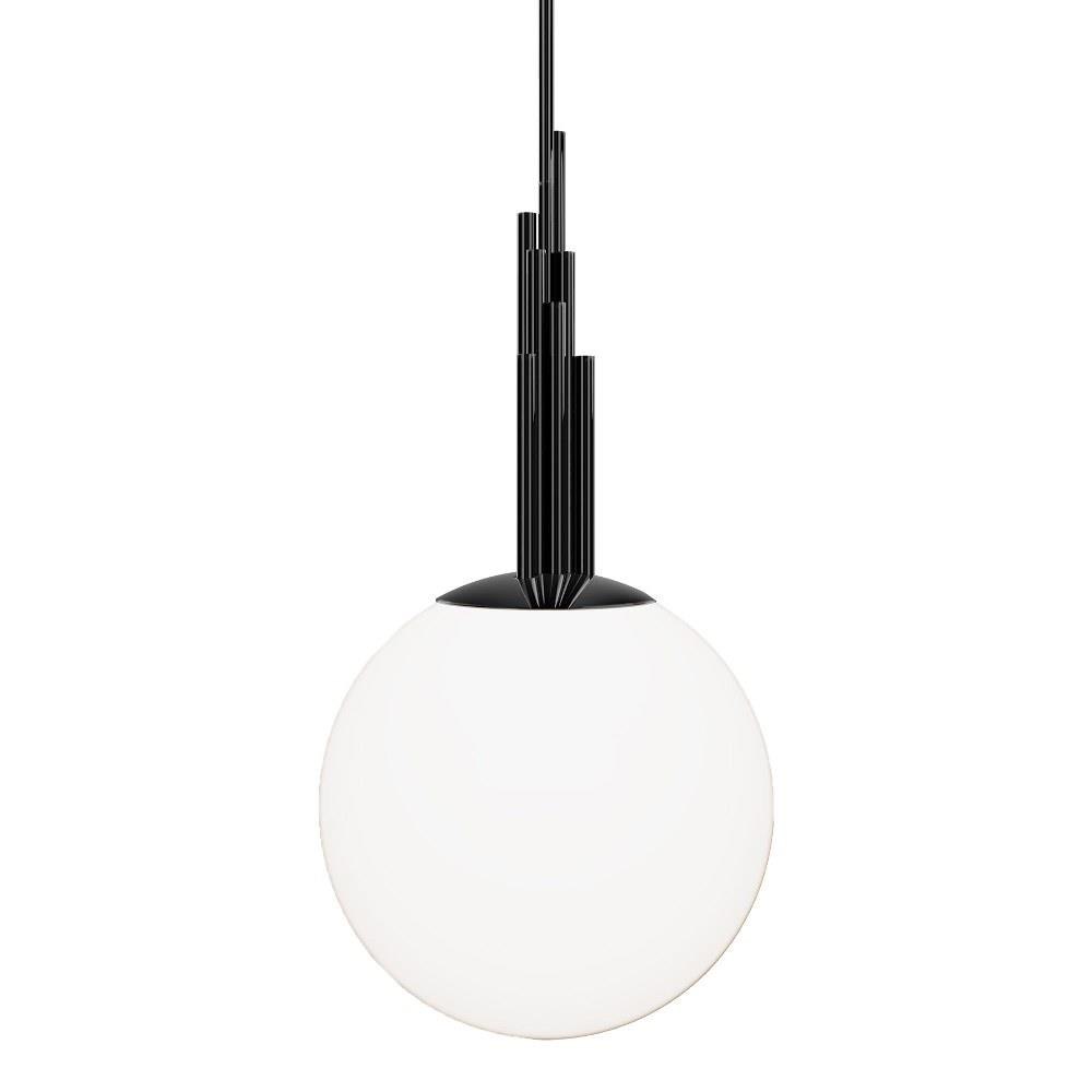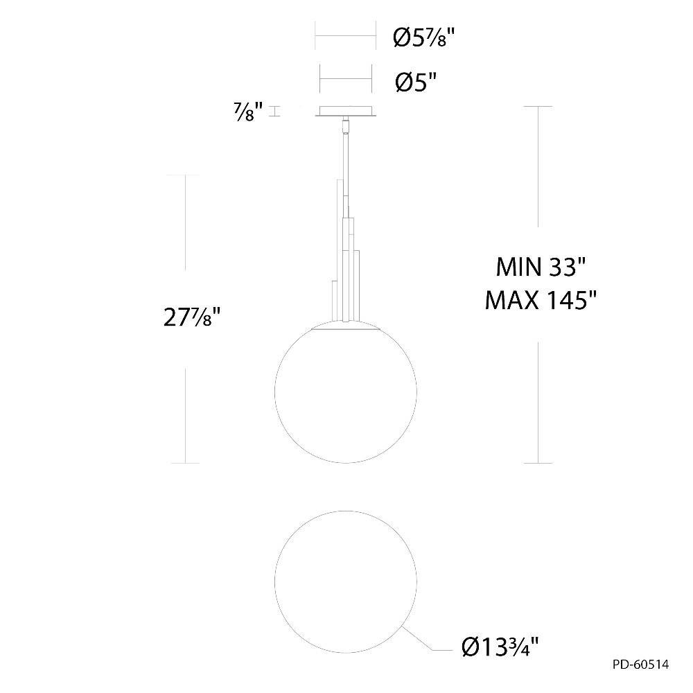Showcasing Art Deco elegance with its layered cantilevered bars, the graceful Sybil pendant exudes a sleek, modern aesthetic. A minimalist round globe shade illuminated by color temperature selectable LEDs enhances the sense of order and balance, emerging gracefully from the pendant's clean, structured lines. Sybil is offered in 10 and 14-inch sizes and a choice of aged brass or polished black nickel finishes.