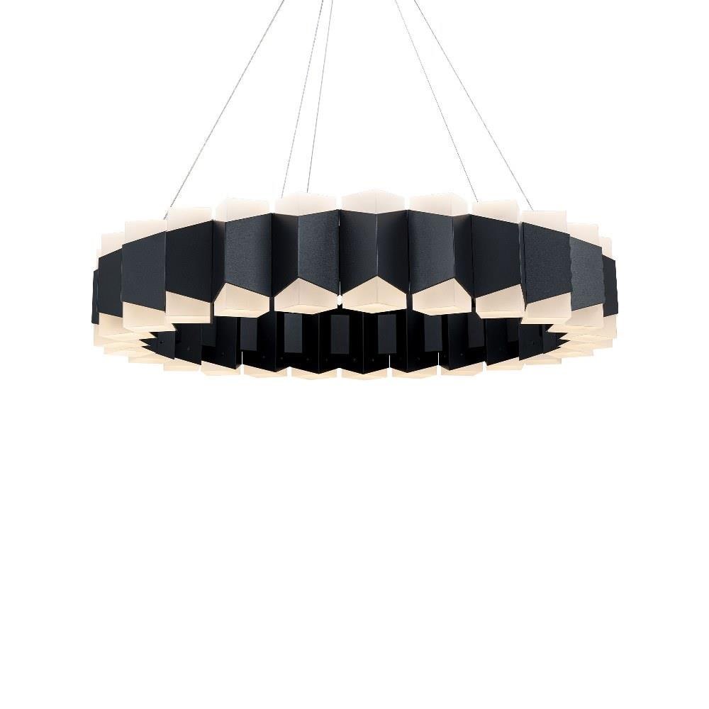 Evoking the grandeur of an Elizabethan ruff, the Dolman pendant features interconnected triangles finished black forming a frilled collar of light. The frosted acrylic points are illuminated by LEDs, casting a warm 3000K glow both upwards and downwards, for a beautifully ambient atmosphere.