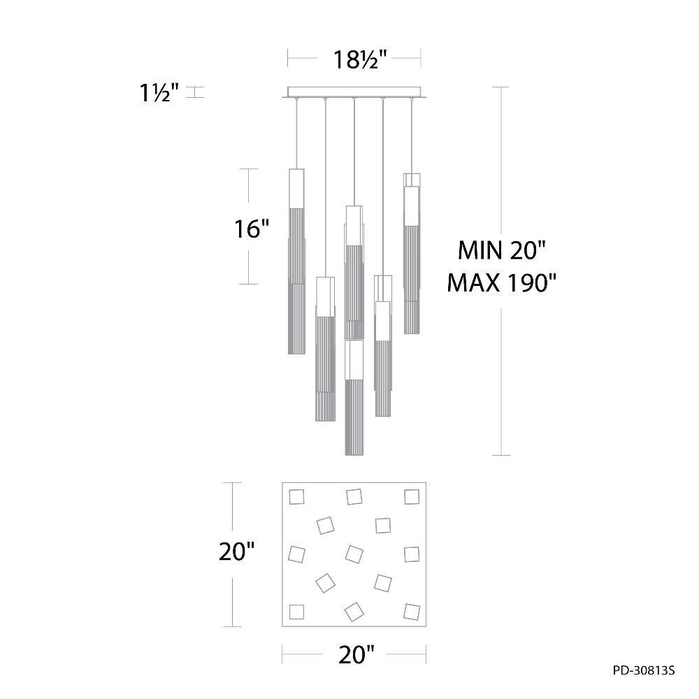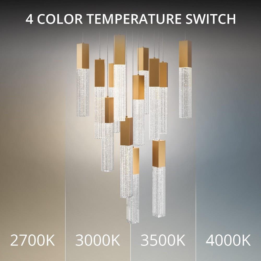 In a luxe finish, the Cinema Square multi-light pendant makes a modern statement that's right in line with the latest trends. Painstakingly V-cut seeded crystal adds understated glamour when it fills with light sourced from high-performance LEDS offering color temperature adjustability. Available in an aged brass or black finish, you can select 13, 25 or 41 lights installed on a square canopy.