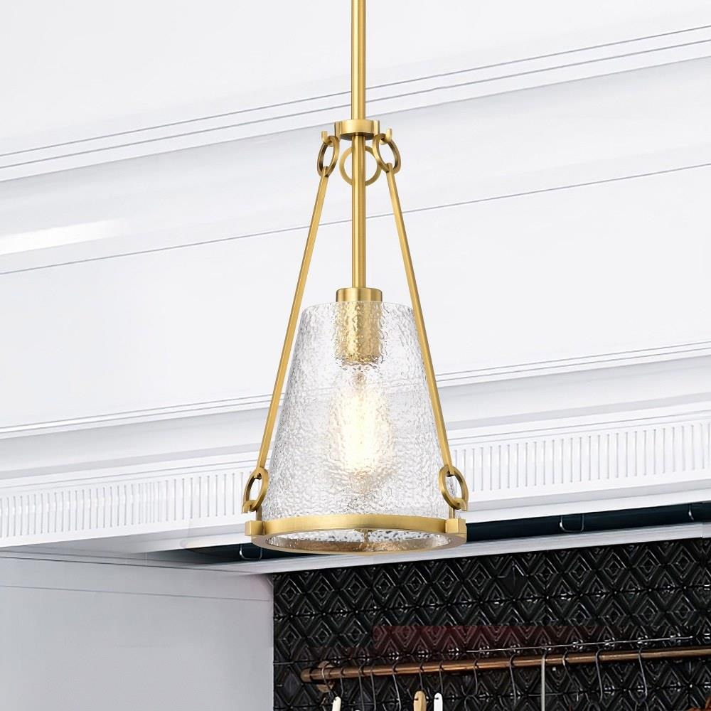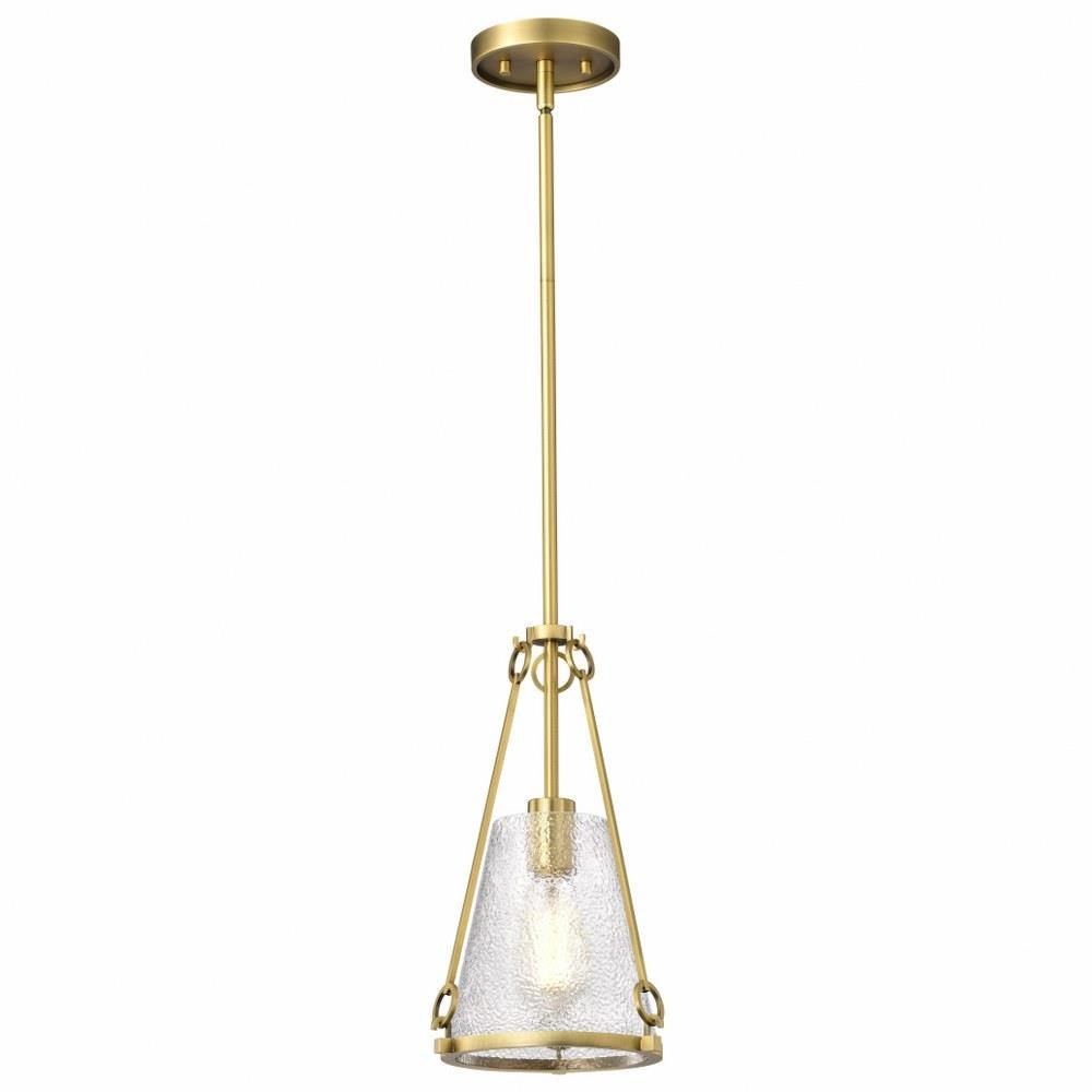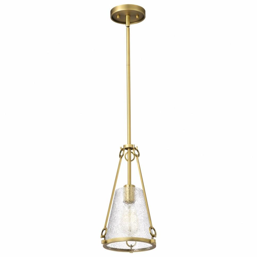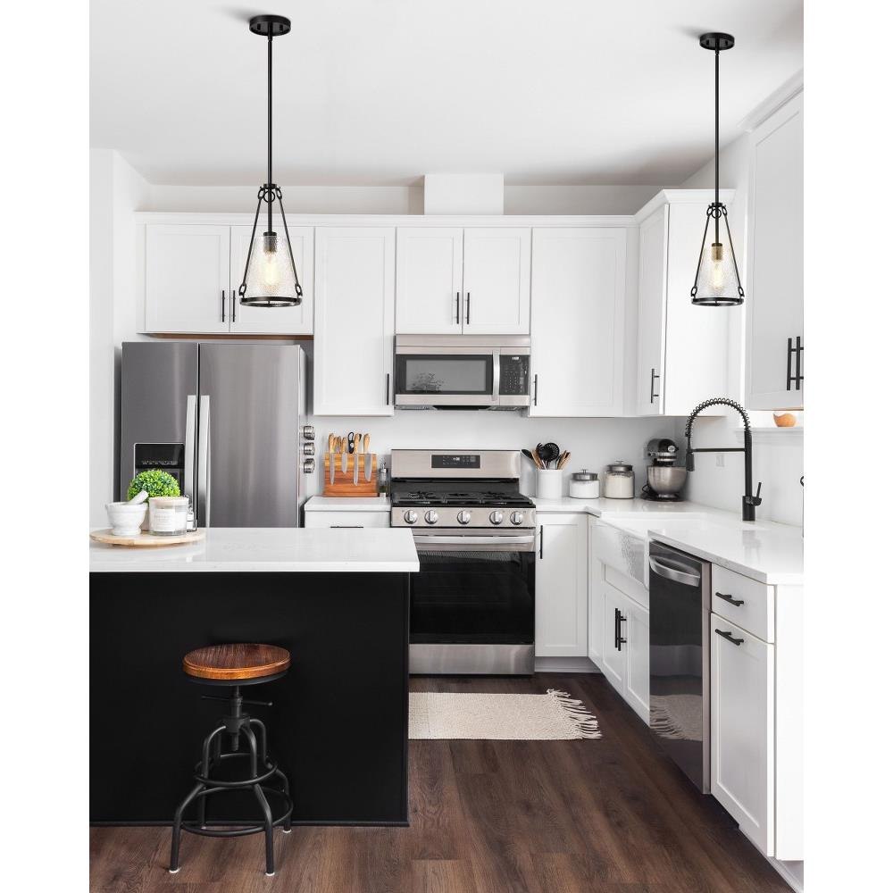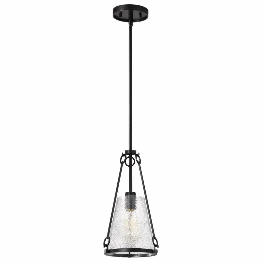 A warm glow with modern elegance, the Valentine 60-8255 one light small pendant is styled in an updated version of gas-lighting, a true past and present design for today's home lighting. With its striking combination of vintage inspiration and contemporary sophistication, it exudes warmth and style. Offered in a matte black finish, Valentine features distinctive hammered conical glass that creates a mesmerizing interplay of light and texture. Perfect for adding character and ambiance, it's a design that captures the essence of romance and enduring beauty.