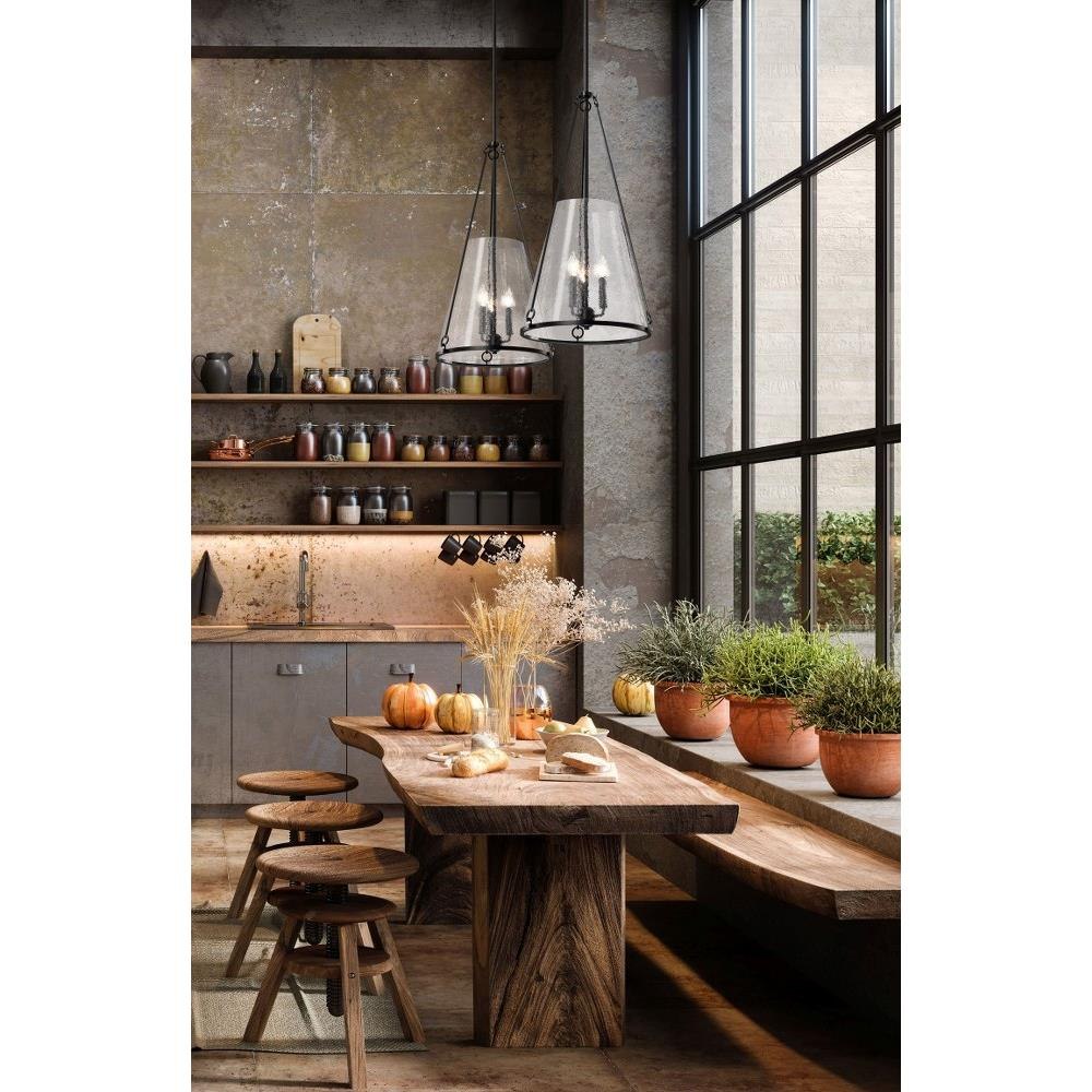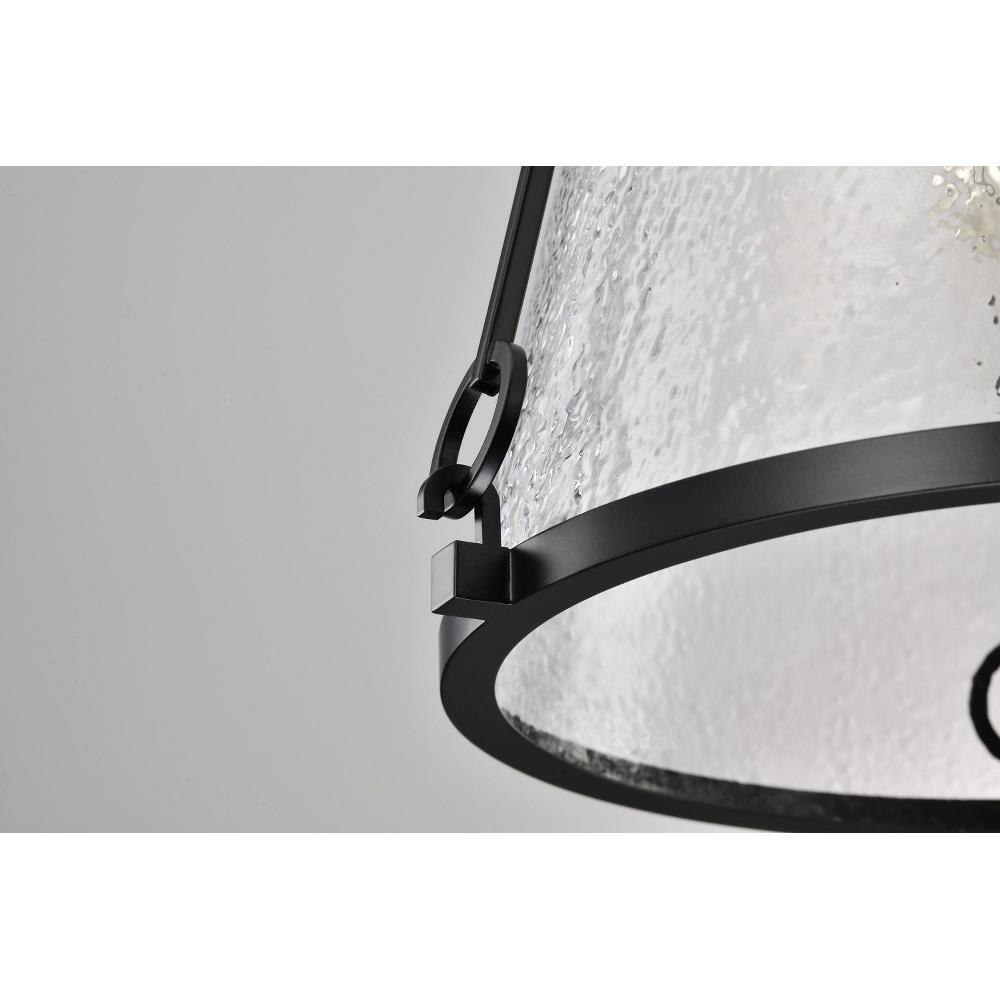 A warm glow with modern elegance, the Valentine 60-8257 one light large pendant is styled in an updated version of gas-lighting, a true past and present design for today's home lighting. With its striking combination of vintage inspiration and contemporary sophistication, it exudes warmth and style. Offered in a matte black finish, Valentine features distinctive hammered conical glass that creates a mesmerizing interplay of light and texture. Perfect for adding character and ambiance, it's a design that captures the essence of romance and enduring beauty.