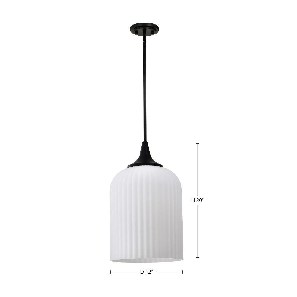 Introducing the Solara 60-8646 one light pendant, where timeless design takes on a fresh perspective. With graceful simplicity redefined, it's traditionally styled and features fine details, offering a harmonious balance of elegance and ease. Finished in matte black, beautifully complementing the satin white scalloped glass for a soft and inviting glow. Perfect for creating a serene yet sophisticated ambiance, Solara is designed to bring lasting beauty and effortless illumination to any space.
