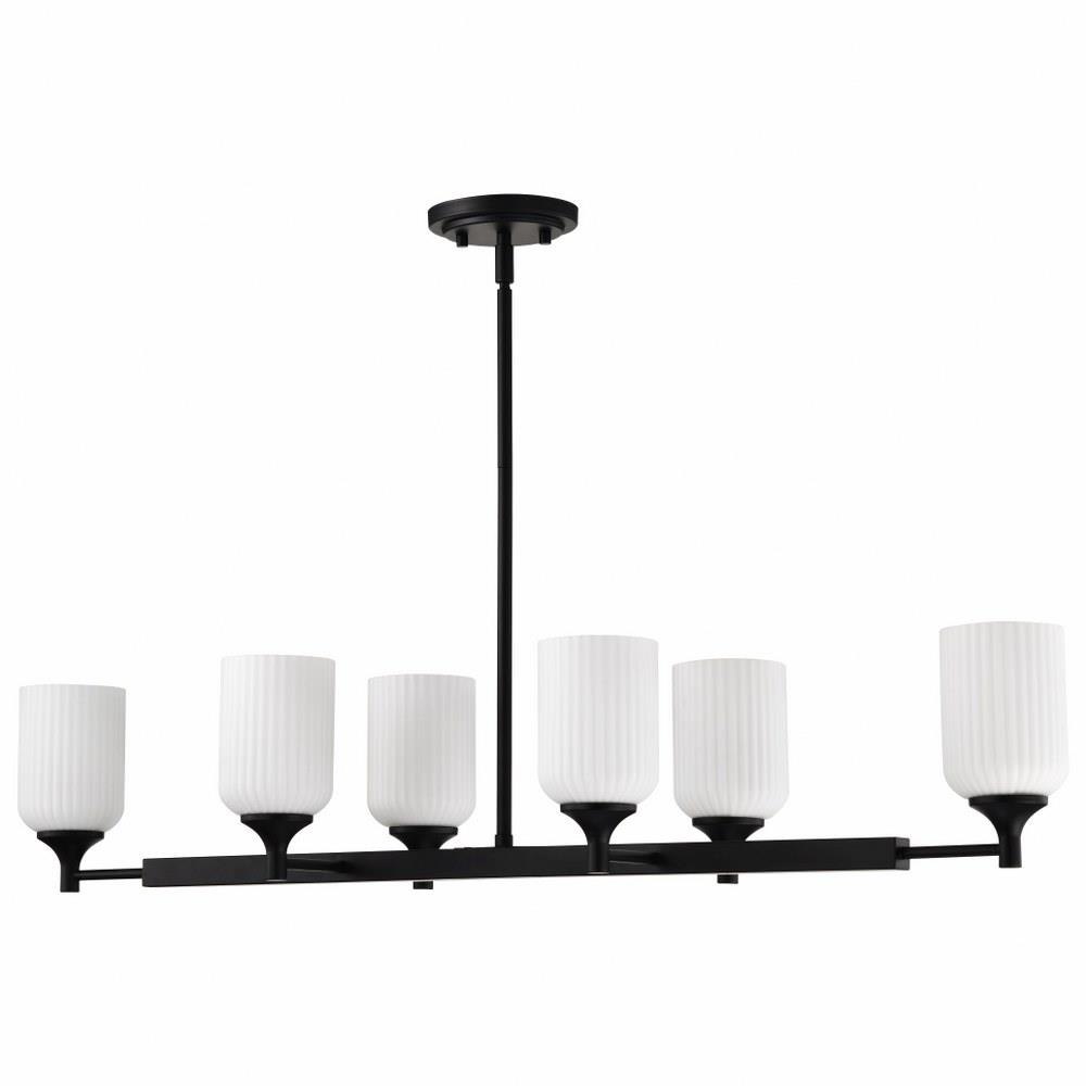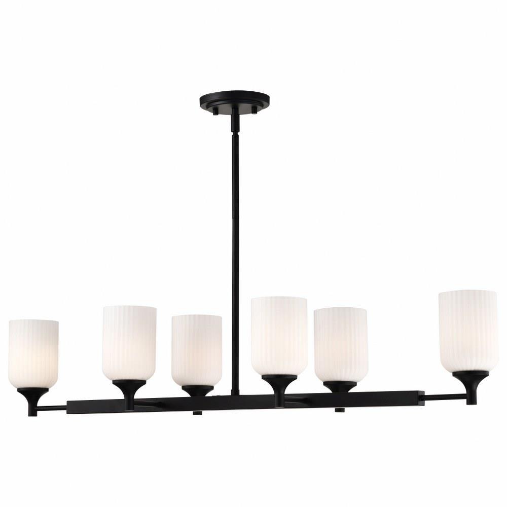 Introducing the Solara 60-8649 six light island fixture, where timeless design takes on a fresh perspective. With graceful simplicity redefined, it's traditionally styled and features fine details, offering a harmonious balance of elegance and ease. Finished in matte black, beautifully complementing the satin white scalloped glass for a soft and inviting glow. Perfect for creating a serene yet sophisticated ambiance, Solara is designed to bring lasting beauty and effortless illumination to any space.