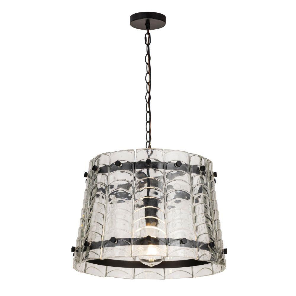 Evoking the softness of fabric through sculpted solids, thick clear cast glass panels, each with a tiered scallop motif, are gathered into tapered cone silhouette that shimmers with texture and depth. Framed in a rich Dark Bronze finish, the design feels both heirloom and modern. Offered in multiple pendant configurations and coordinating sconce, Ruche brings a tailored glow to kitchens, entryways, or intimate dining spaces with refined charm.