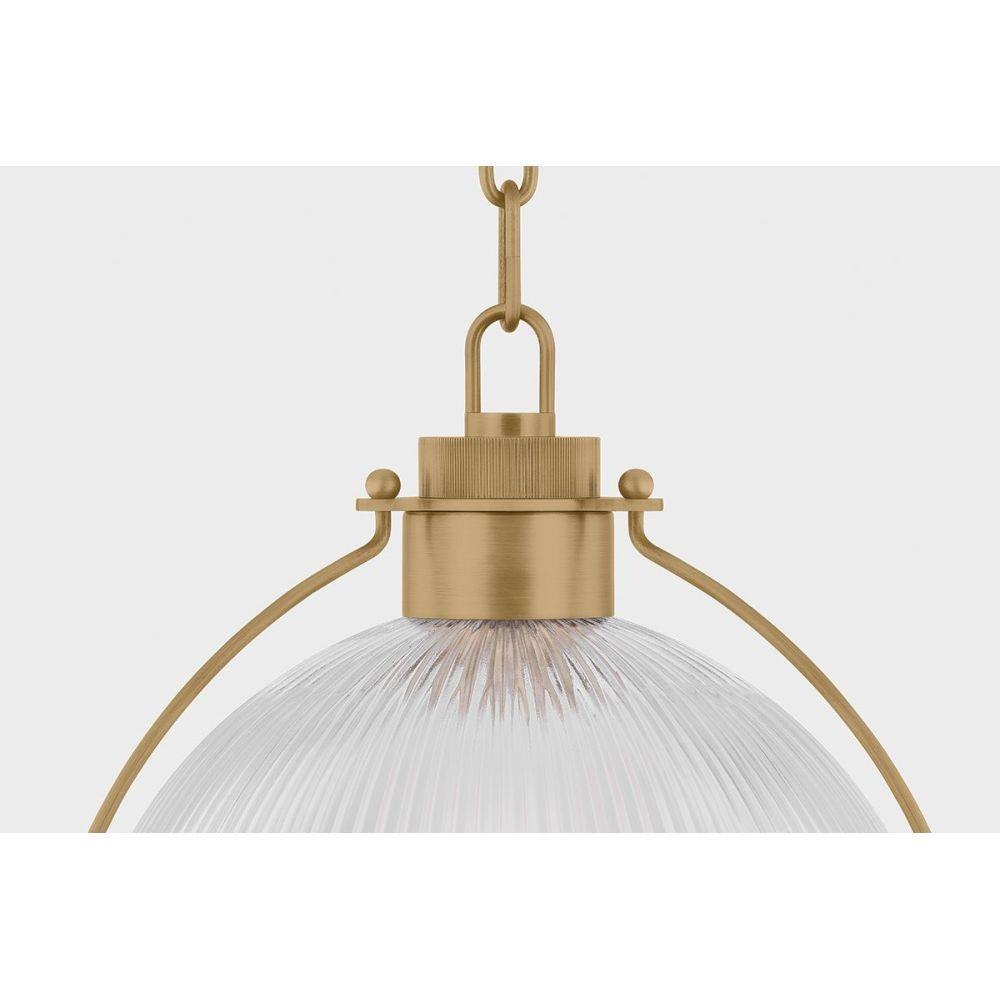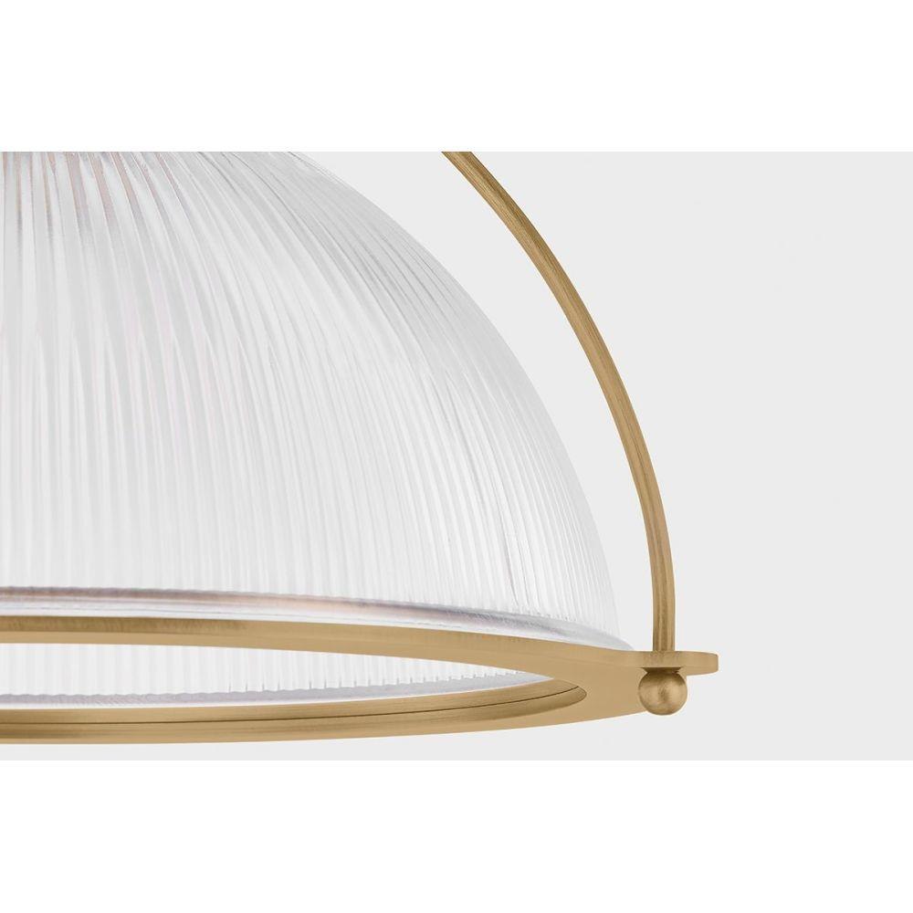 Inspired by classic RLM silhouettes, Glint reimagines industrial design with character and vintage-inspired details. The ribbed Holophane glass shade adds texture while softly diffusing light. Three suspension arms work to create a clean, structural frame that emphasizes balance and craftsmanship. A Patina Brass finish enhances Glint’s retro aesthetic.
