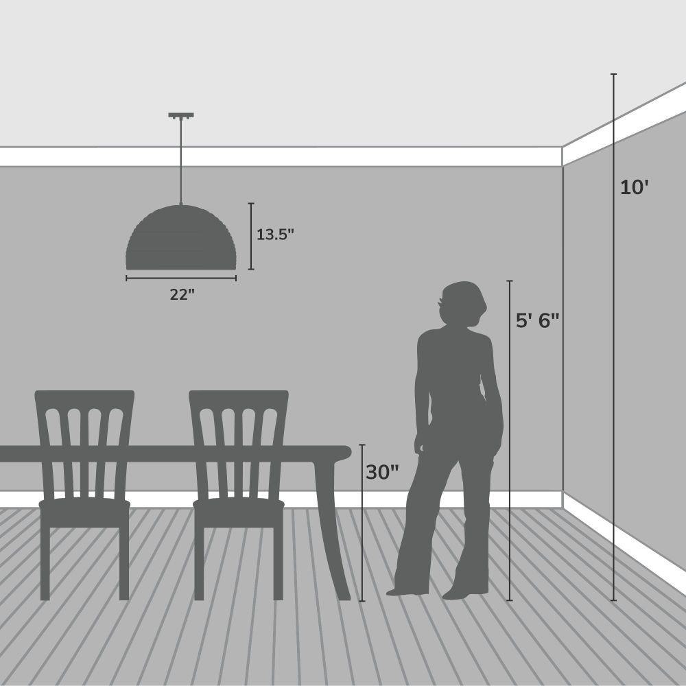DIMENSIONS: Minimum overall height: 17 inches. Maximum overall height, when all included down rods are used: 121 inches.