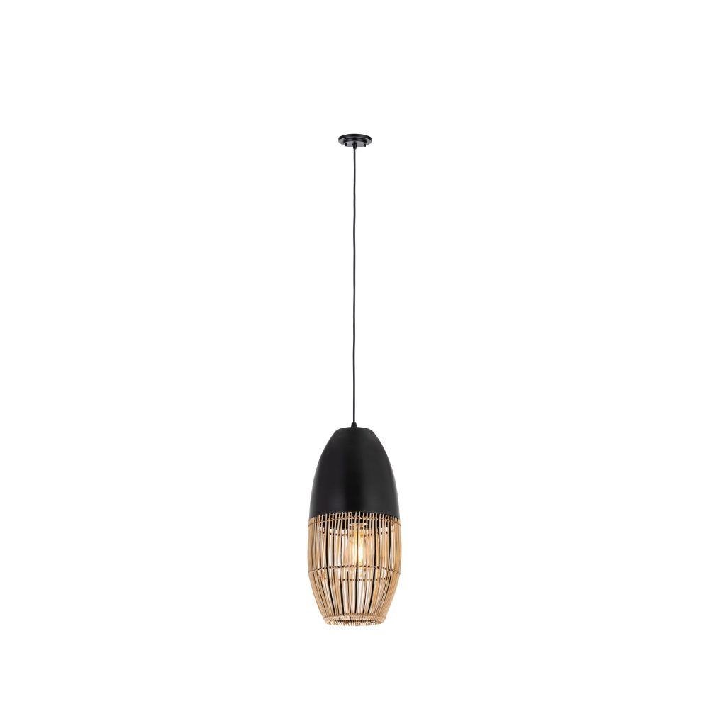 With soft lines and natural woven rattan, this cylindrical pendant is enhanced by contrasting black detail. It’s an understated yet stylish accent for modern spaces.