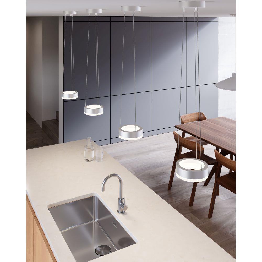 Corona is a circular profile of light; a warm ringed glow of LED illumination providing both the presence and the absence of volume. Corona is available in a range of larger diameters. Also available as a Double Corona Pendant.