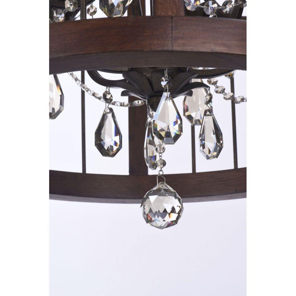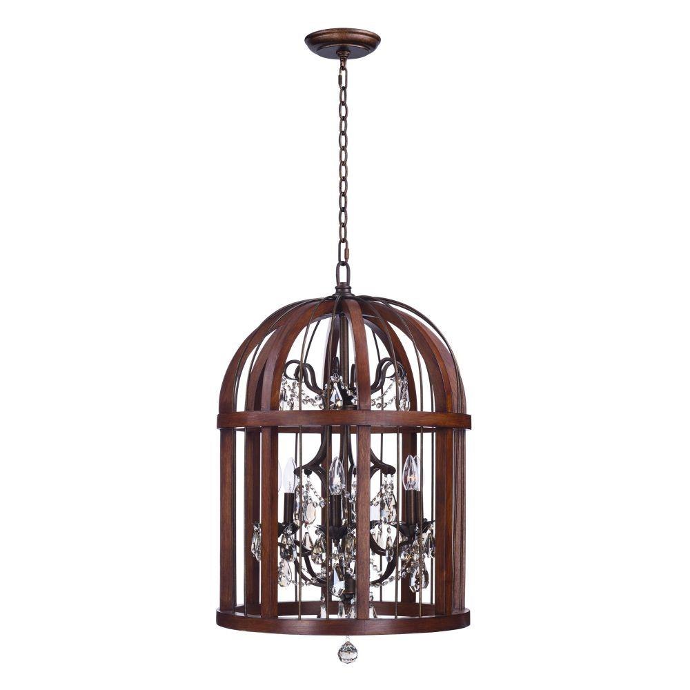 Cages constructed of wood, finished in Antique Pecan, blend beautifully with the metal bars painted in our rich Bay finish. Elegant chandeliers, draped in crystal, grace the interior of the cage to create a unique transitional style to fit a wide variety of interiors.