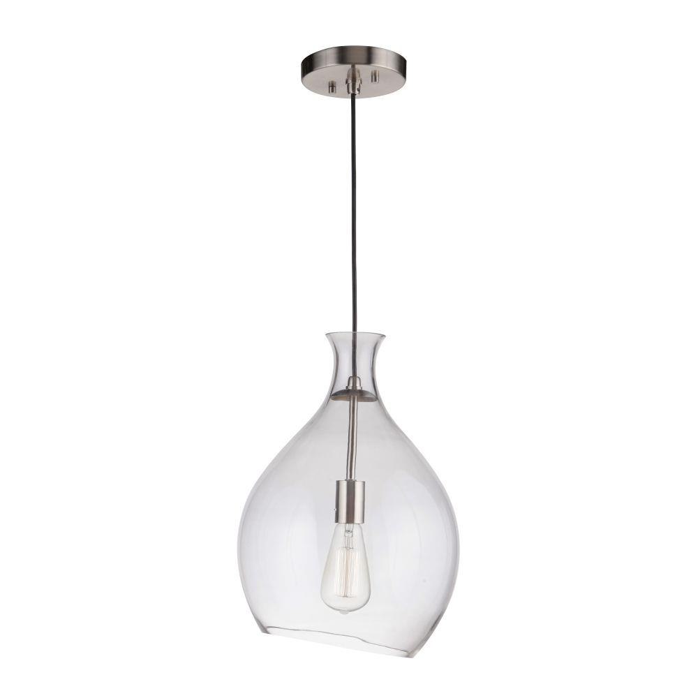 Pendant 1 Light Pendant in Brushed Polished NickelThe Zuni pendant collection inspires with it's abstract clear glass globe available in two sizes, striking brushed nickel finish and adjustable cord for easy installation.