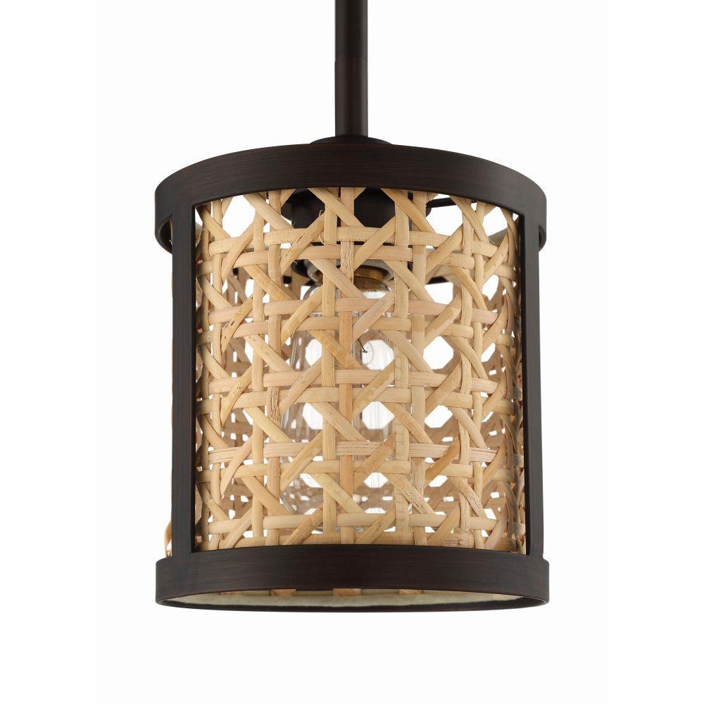 The Malaya Collection combines the warm, earthy tones and texture of real woven rattan with clean transitional silhouettes to create a global experience. Featuring an enlarged woven pattern captured within the rich aged bronze brushed finished cage, the rattan drums of assorted shapes and sizes combine to create a versatile collection welcome in any space.Natural rattan shadeRequires 1 medium base, 60 watt bulbs (not included)(3) 12 inch and (1) 6 inch downrod included1 year limited warranty.