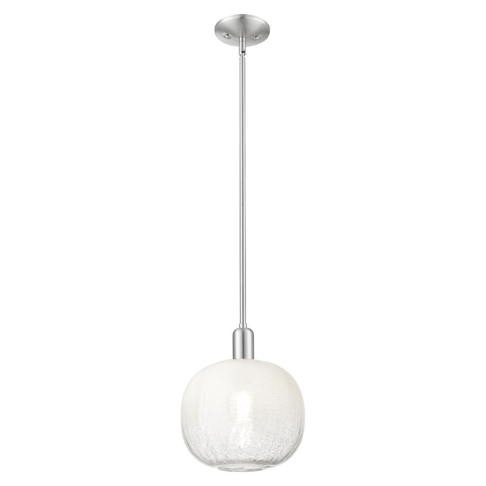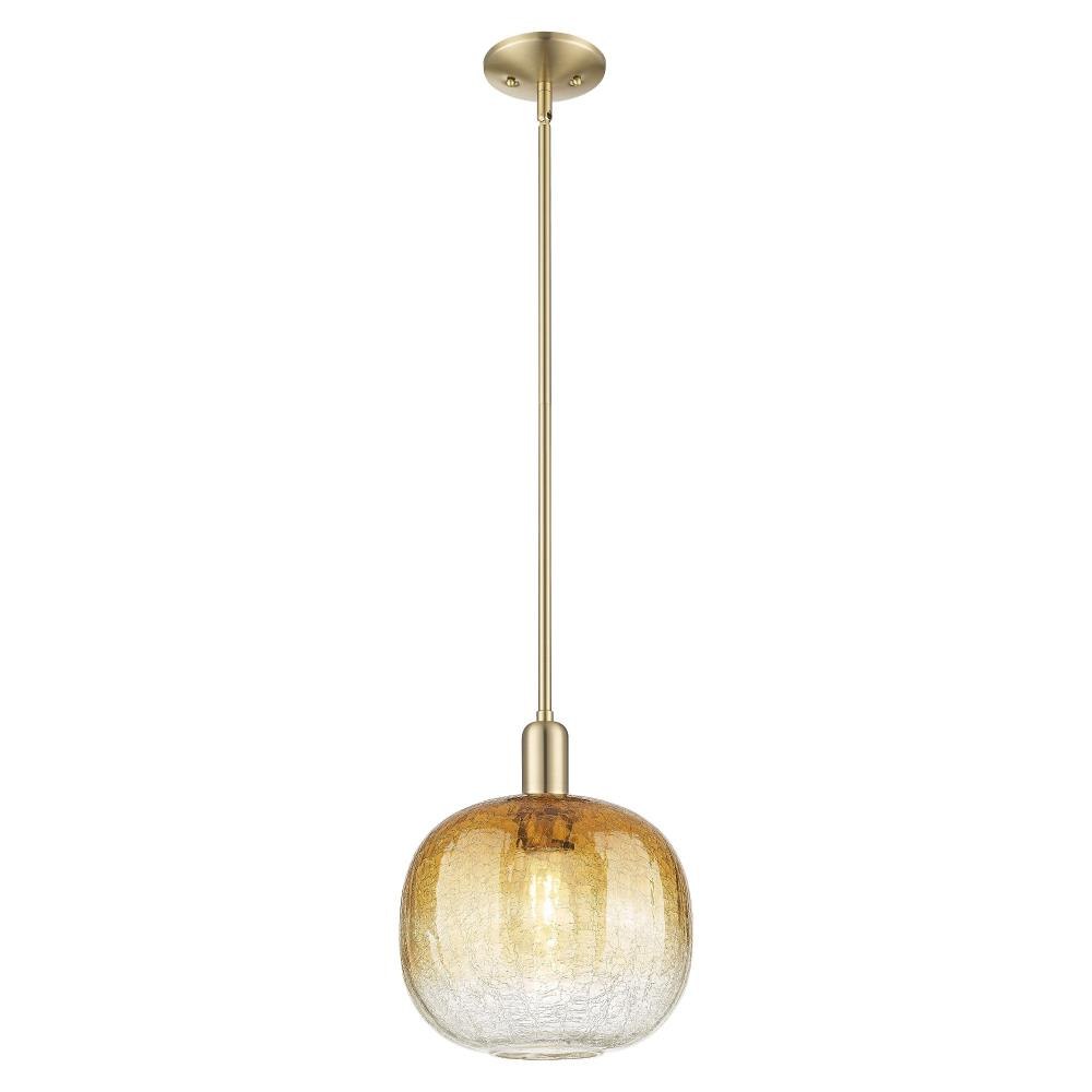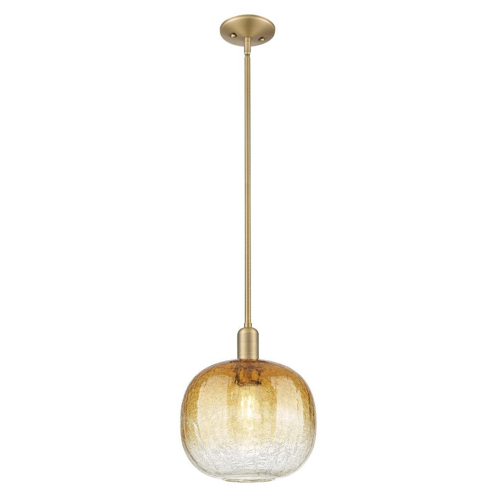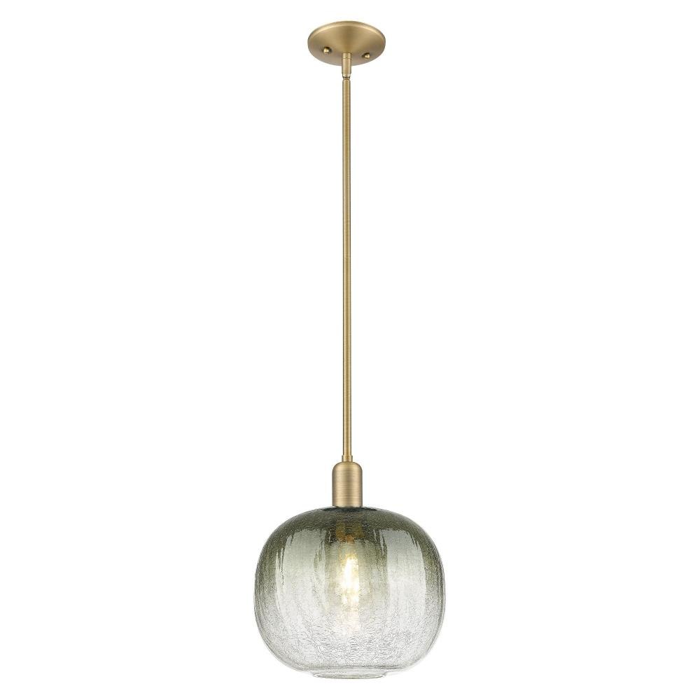 The Brookhaven Sphere 1-Light Stem Hung Mini-Pendant offers a versatile lighting solution with a 10-inch width and 8-inch height, designed to complement a wide range of interior décors. This fixture combines brass, glass, and steel materials to create a sleek, durable pendant light that integrates seamlessly into residential spaces.