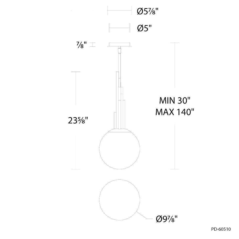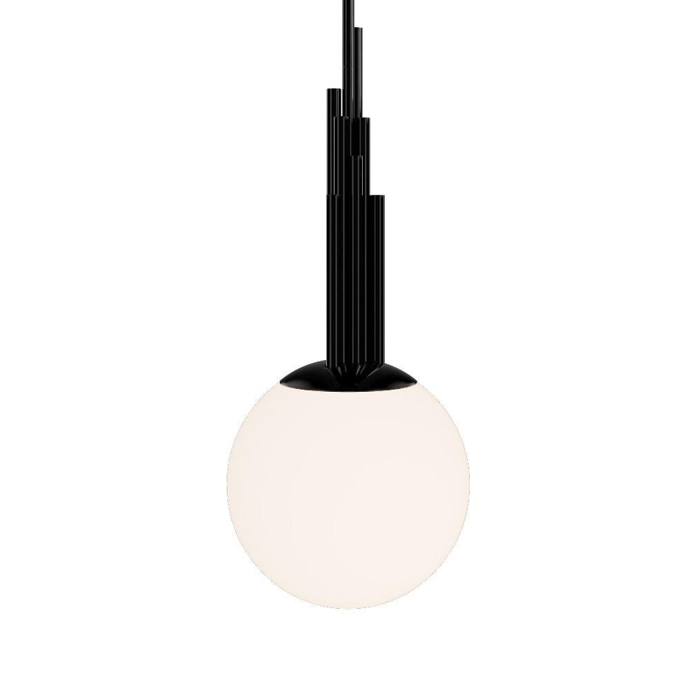Showcasing Art Deco elegance with its layered cantilevered bars, the graceful Sybil pendant exudes a sleek, modern aesthetic. A minimalist round globe shade illuminated by color temperature selectable LEDs enhances the sense of order and balance, emerging gracefully from the pendant's clean, structured lines. Sybil is offered in 10 and 14-inch sizes and a choice of aged brass or polished black nickel finishes.