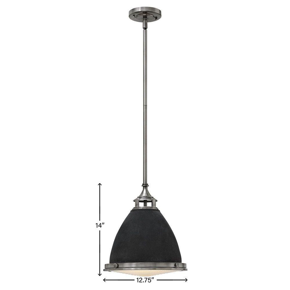 Amelia's classic pendant design reinvents vintage details with a cast metal fitter, decorative metal trim ring and ornamental knobs. Bold finish options glow with retro inspiration.Suitable for use in dry (indoor) locations as defined by NEC and CEC. Meets United States UL Underwriters Laboratories & CSA Canadian Standards Association Product Safety Standards / This fixture includes multiple down stems in various lengths to customize the installation height of the fixture, including one 6" stem and two 12" stems. / Angular lines, a bold finish, simple shape and sturdy details merge for a robust but pared down industrial design / Rich gray tone / This stem hung fixture may be hung on a sloped ceiling