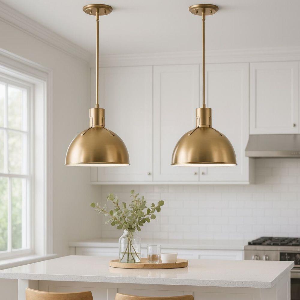 Suitable for use in dry (indoor) locations as defined by NEC and CEC. Meets United States UL Underwriters Laboratories & CSA Canadian Standards Association Product Safety Standards / This fixture includes multiple down stems in various lengths to customize the installation height of the fixture, including one 6" stem and two 12" stems. / Classic gleaming light brass finish / This stem hung fixture may be hung on a sloped ceiling / Meets California Energy Commission Title regulations/JA8 when using the included LED bulb / LED Bulbs carry a 3-year limited warranty / Scandinavian design is marked by a focus on clean, simple lines, minimalism, and functionality without sacrificing beauty.