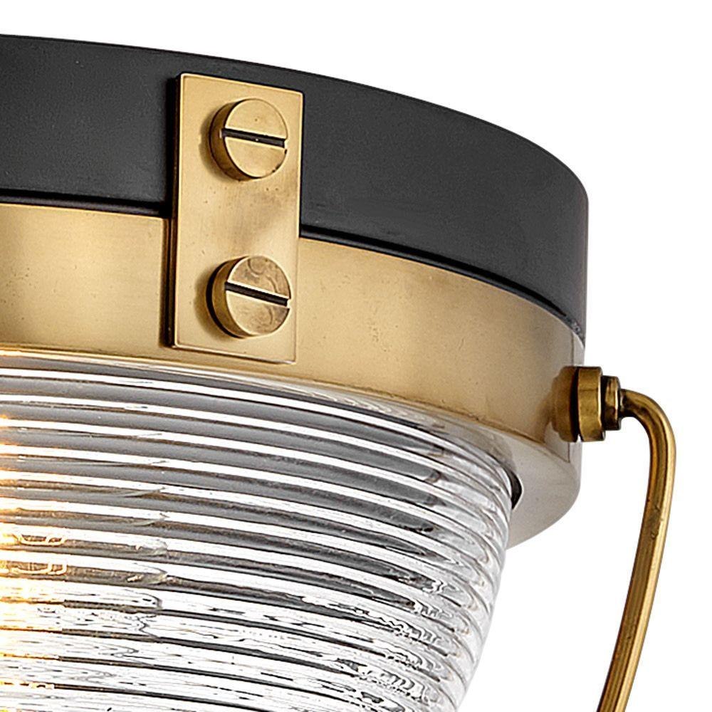 Smooth sailing ahead with the striking Crew. Chicly designed with a hint of coastal panache, the clear ribbed glass bowls are covered in a wire cage inspired by vintage maritime lighting. Offered in a crisp variety of finishes, Crew enhances modern, rustic, industrial or coastal spaces alike.Suitable for use in dry (indoor) locations as defined by NEC and CEC. Meets United States UL Underwriters Laboratories & CSA Canadian Standards Association Product Safety Standards / Classic gleaming light brass finish / Ideal for vintage filament bulbs (not included) / Chic, modern design with refined details adds a fresh, minimalist elegance