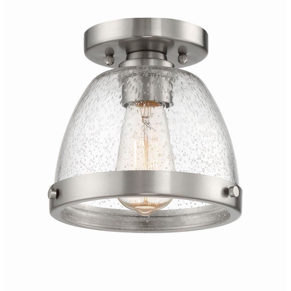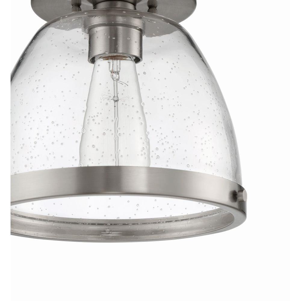 Light illuminates the clear seeded glass shade of these flushmounts from our Lodie Collection by Craftmade. Featuring two sizes offered in three finishes, the Lodie Flushmount Collection offers the clean transistional styling and excellent light without all the fuss.