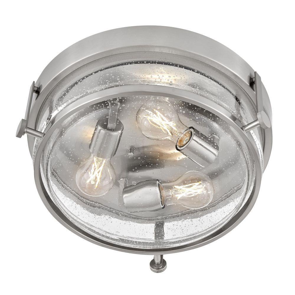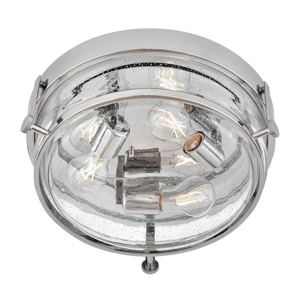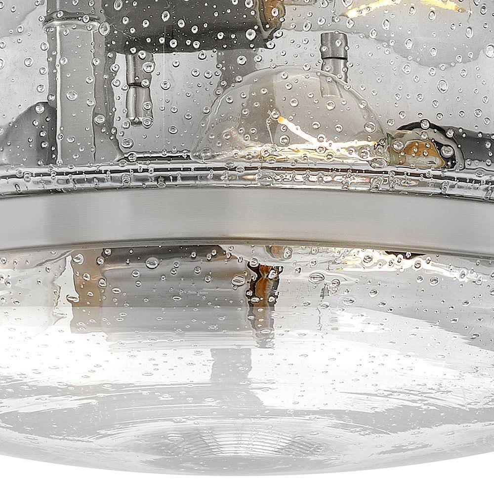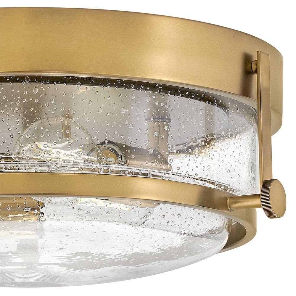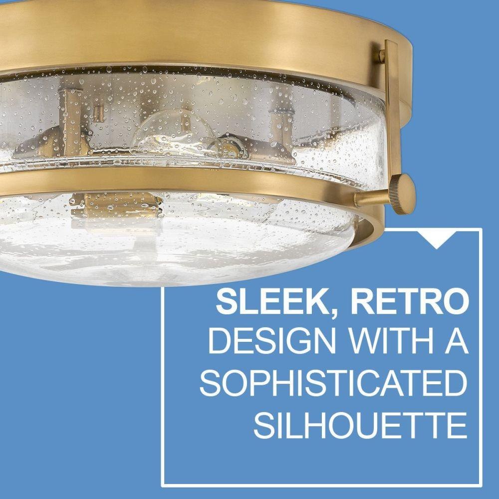 Harper’s sleek, retro design elevates the traditional ceiling mount with a unique clear seedy glass bound by a prominent metal ring and decorative knobs. Available in five classic finishes.Suitable for use in dry (indoor) locations as defined by NEC and CEC. Meets United States UL Underwriters Laboratories & CSA Canadian Standards Association Product Safety Standards / Classic gleaming light brass finish / Classic, elegant lines and timeless details enhance a traditional space