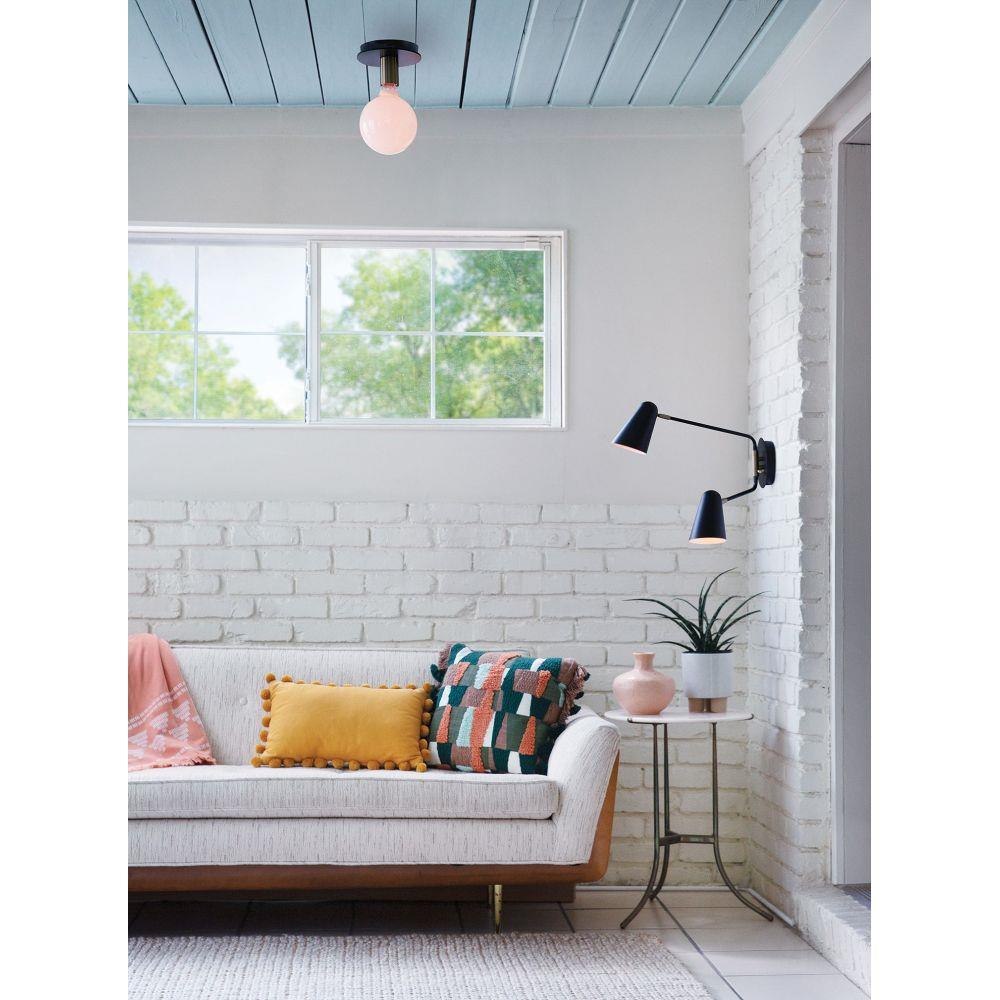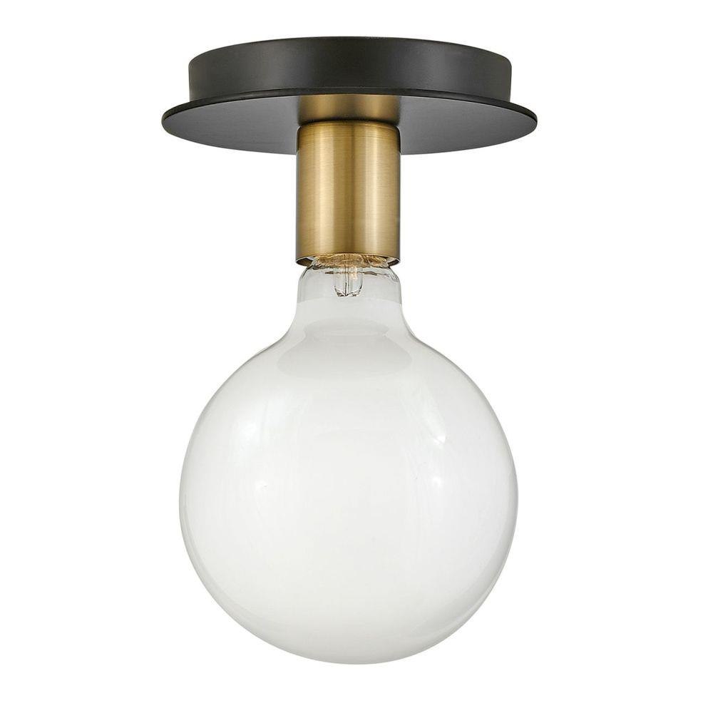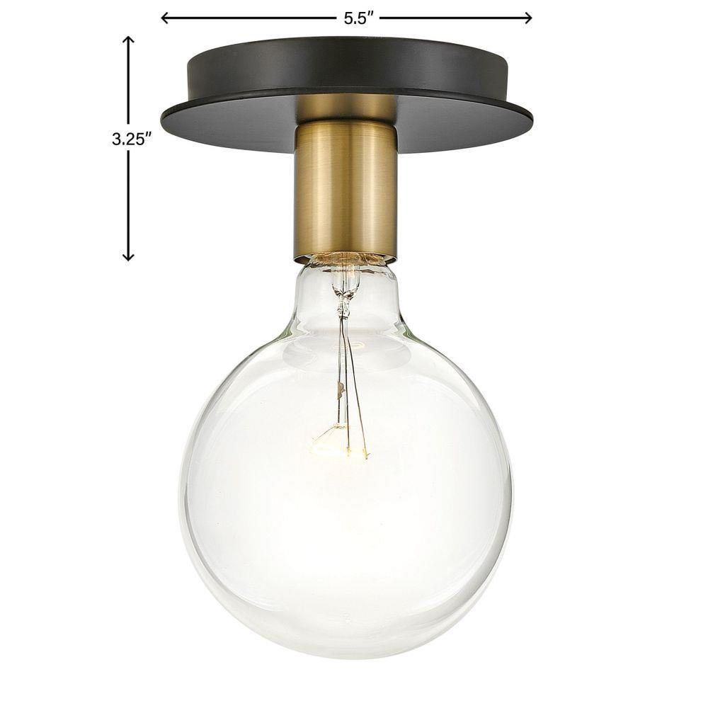 Mingling mid-century modern design elements into its posh form, Bobbie merges a playful vibe with stellar style. This eye-catching flush mount pairs two bold finishes, gleaming Lacquered Brass and an intense Black, to set up the true star of the show: a look-at-me bulb that makes lighting what it should be…fun. To complement Bobbie’s confident style, we recommend a G40 globe-styled bulb in a standard medium base.