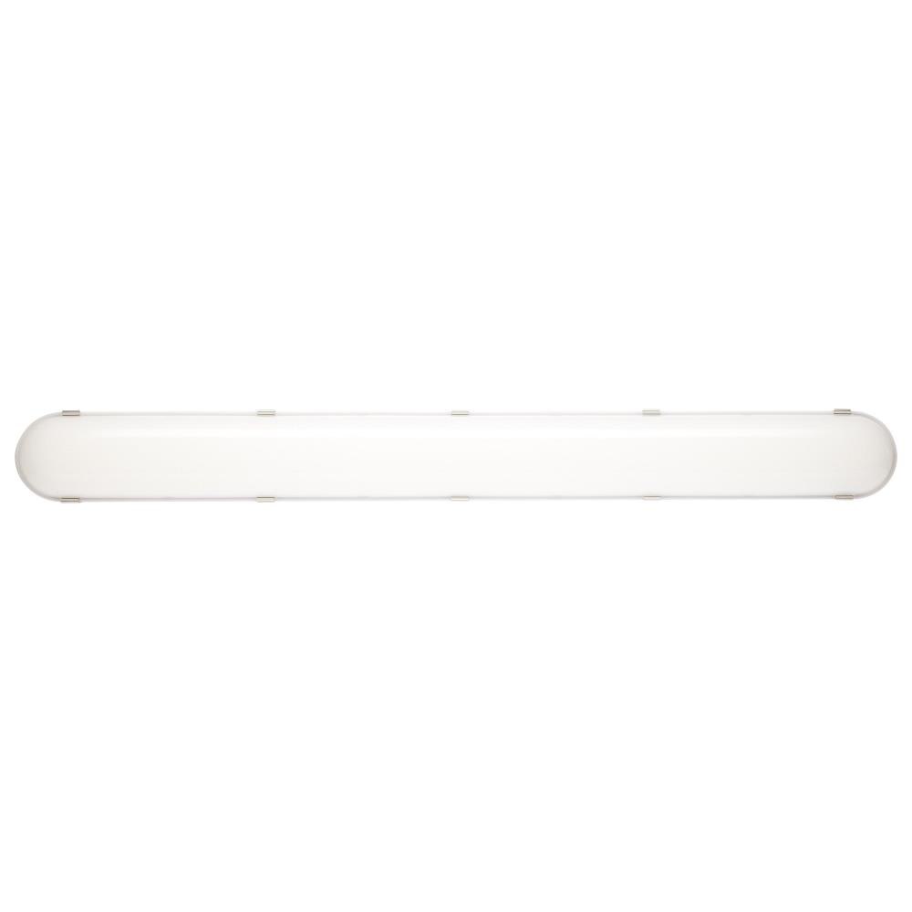 SATCO's 65-821R1 wattage selectable, 4 foot vapor proof fixture is a practical solution for interior and exterior lighting. Packed with improvements and features, this dimmable fixture is CCT and wattage selectable and wet location rated, with 2KV surge protection. Versatile and durable, this vapor proof fixture delivers 50,000 hours of exceptional illumination. With a voltage range extending to up to 347V, this fixture is compliant with Canadian voltage standards.