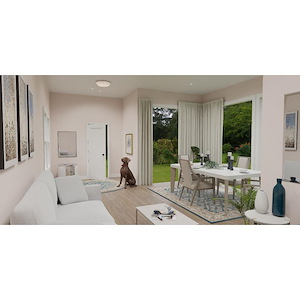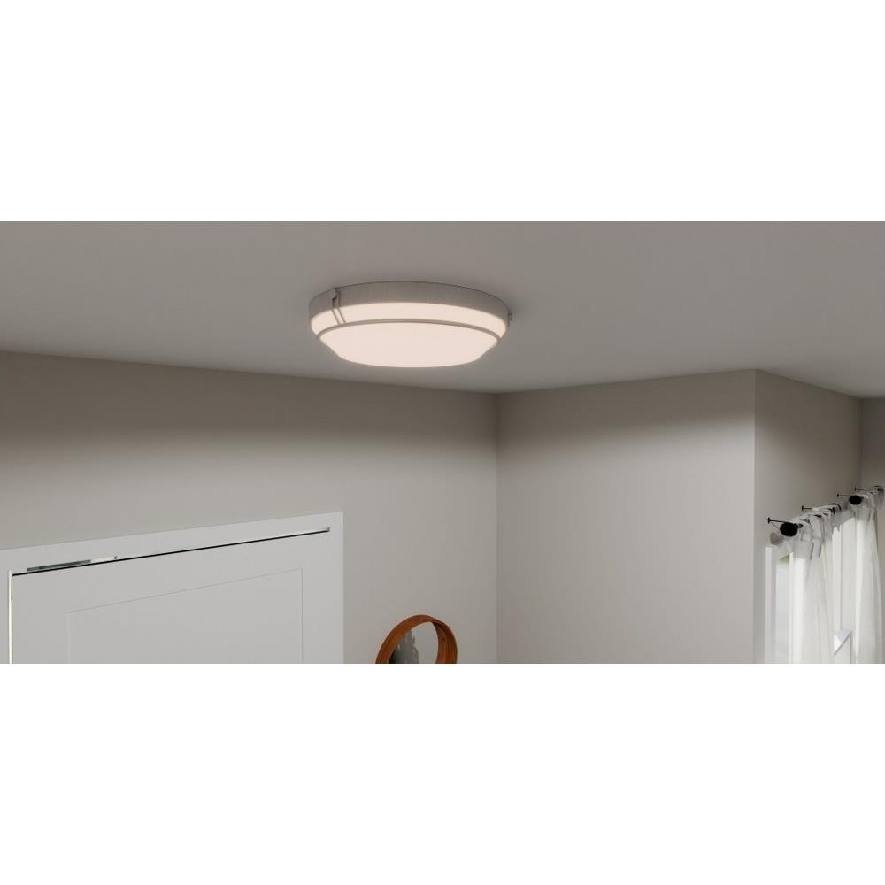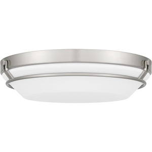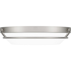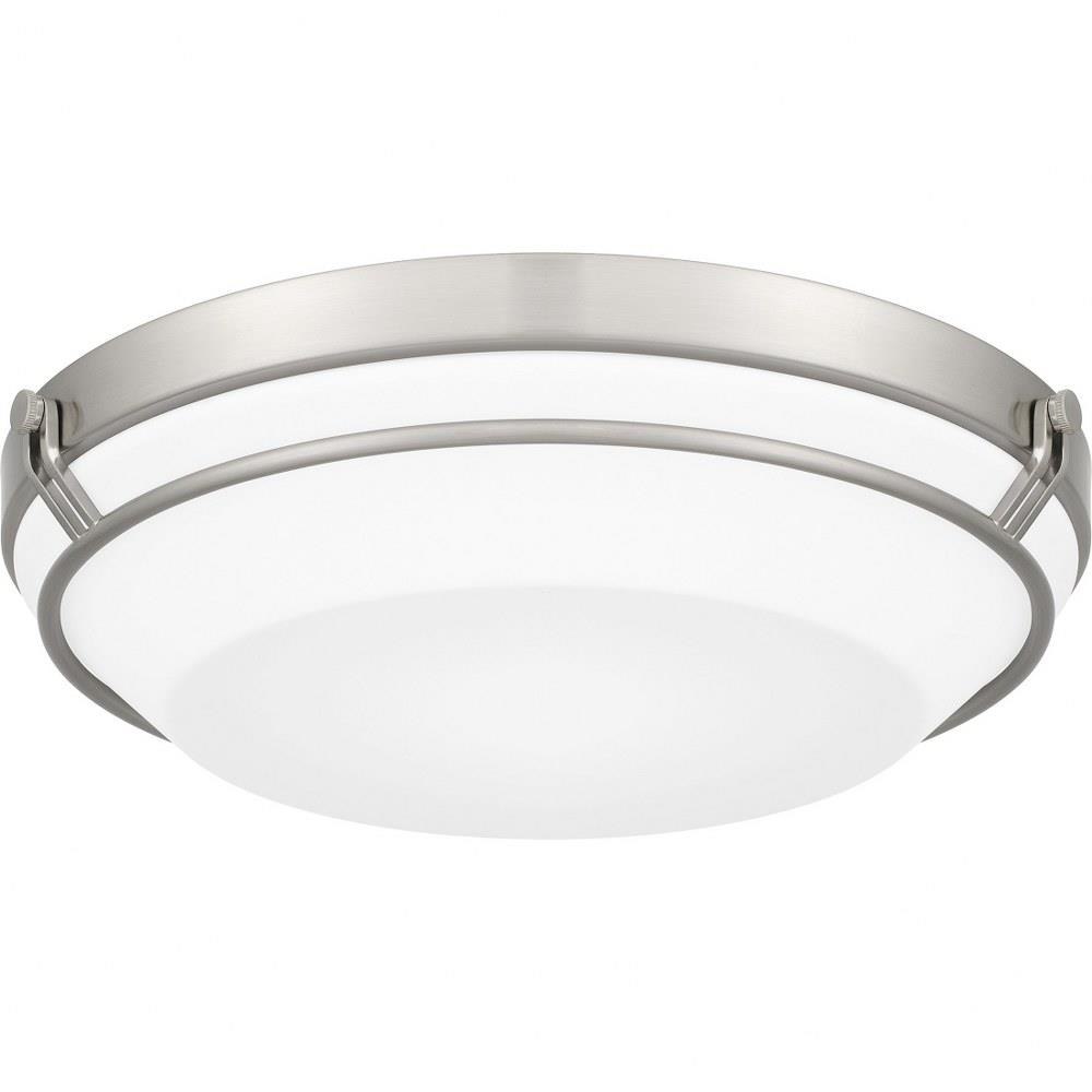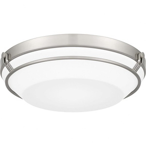 Simple and striking, the Dunbar flush mount offers a contemporary lighting solution in a variety of interior settings. The white acrylic shade is accentuated by clean metal lines, in either brushed nickel or matte black. An integrated LED light source is included for beautiful, energy-efficient illumination.