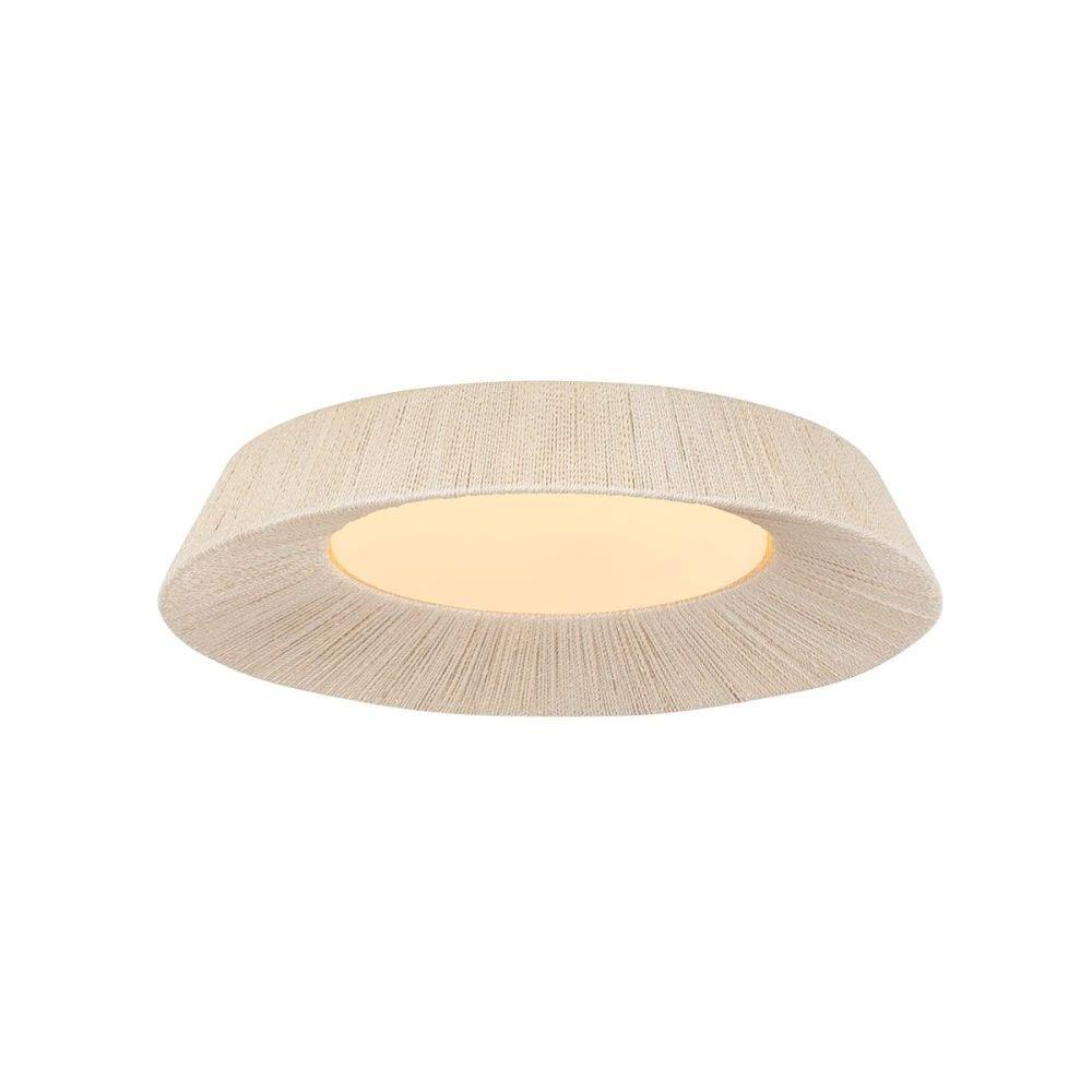 Wrapped in bleached abaca, a minimalist flush mount silhouette becomes a textural statement piece. The wide circular frame of Kenton is fitted with a glossy opal glass diffuser, emanating soft light across a large area. Available in two sizes, the warming shades of Kenton illuminate modern, coastal, or transitional interiors.