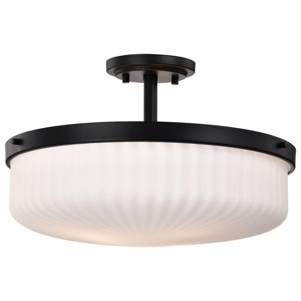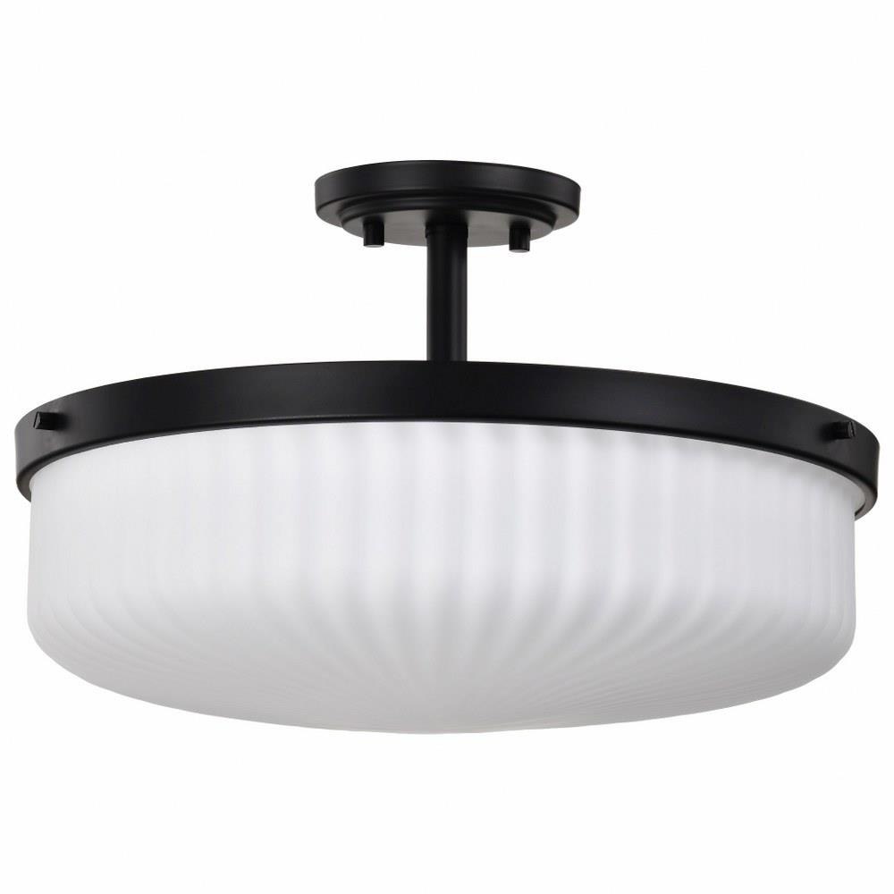 Introducing the Solara 60-8647 three light semi-flush mount, where timeless design takes on a fresh perspective. With graceful simplicity redefined, it's traditionally styled and features fine details, offering a harmonious balance of elegance and ease. Finished in matte black, beautifully complementing the satin white scalloped glass for a soft and inviting glow. Perfect for creating a serene yet sophisticated ambiance, Solara is designed to bring lasting beauty and effortless illumination to any space.