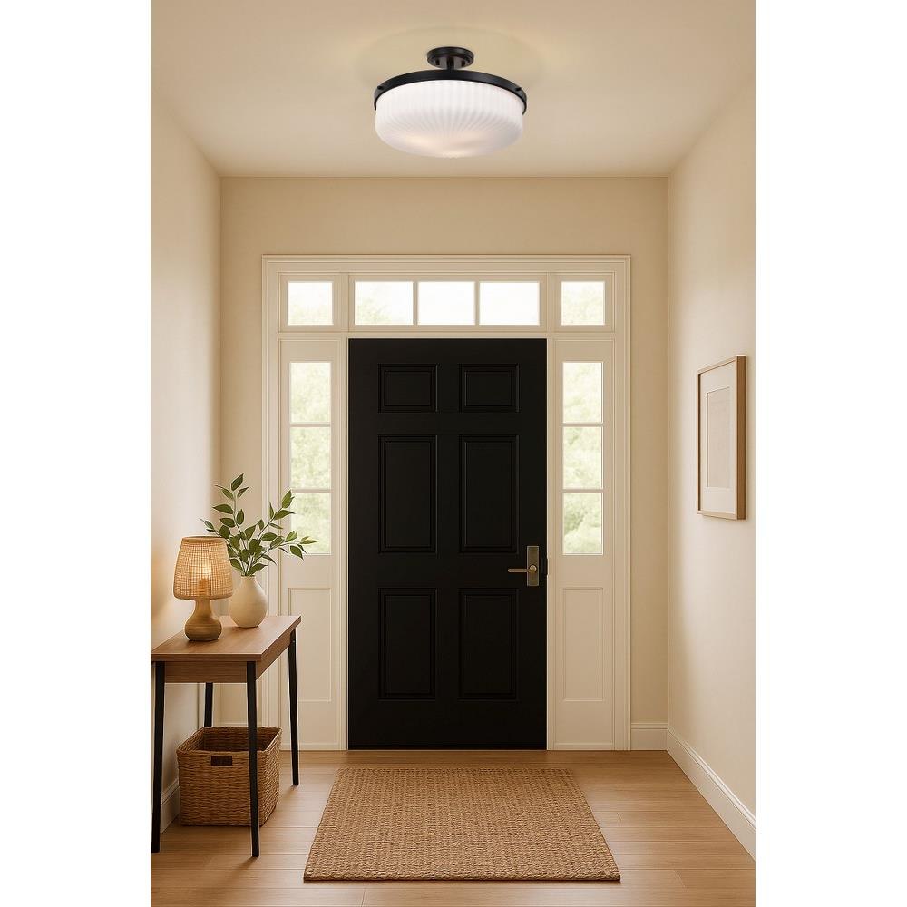 • Finished in Matte Black with Frosted Ribbed Glass