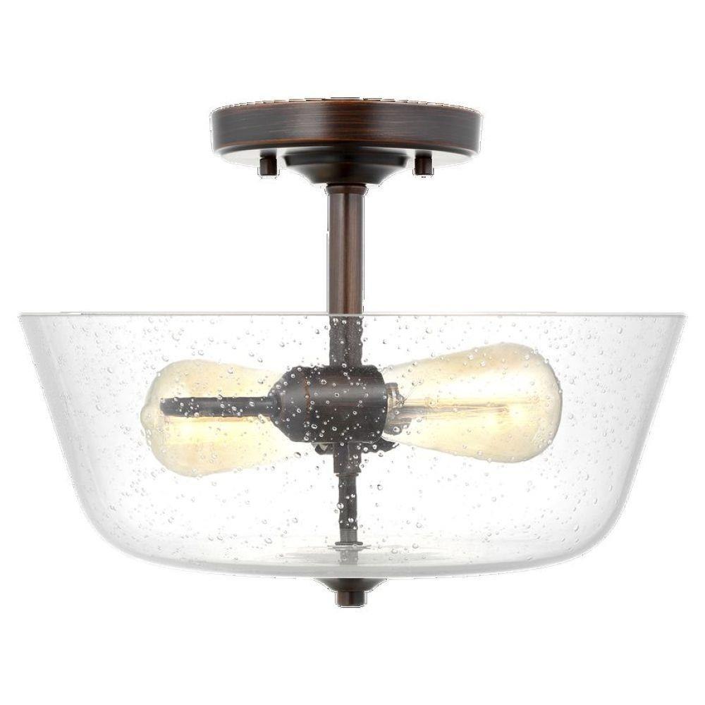 The Belton two light semi flush fixture in bronze provides abundant light to your home, while adding style and interest. Influenced by the vintage industrial designs of early 20th Century America, the transitional Belton lighting collection has seeded glass shades and Midnight Black finish, adding a layer of retro design to the warm look.Product Features and Benefits