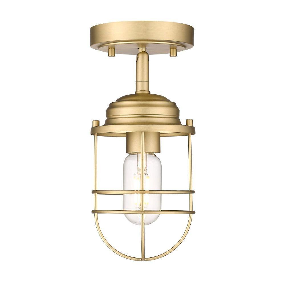 Nautical-inspired, Seaport is a collection of industrial fixtures to create your seaside retreat. Offered in a selection of finishes, the New England style is enhanced by protective cages that shield the otherwise exposed bulbs. Created to suit the needs of many, swivel canopies allow the fixtures to be mounted on sloped ceilings. Ball joints permit a multitude of configurations. This semi-flush is UL approved for use in a bathroom, but also works perfectly in a kitchen, living room, entry, or hallway.