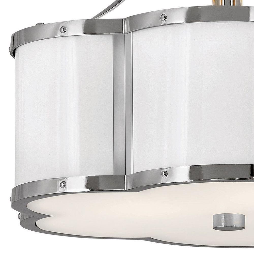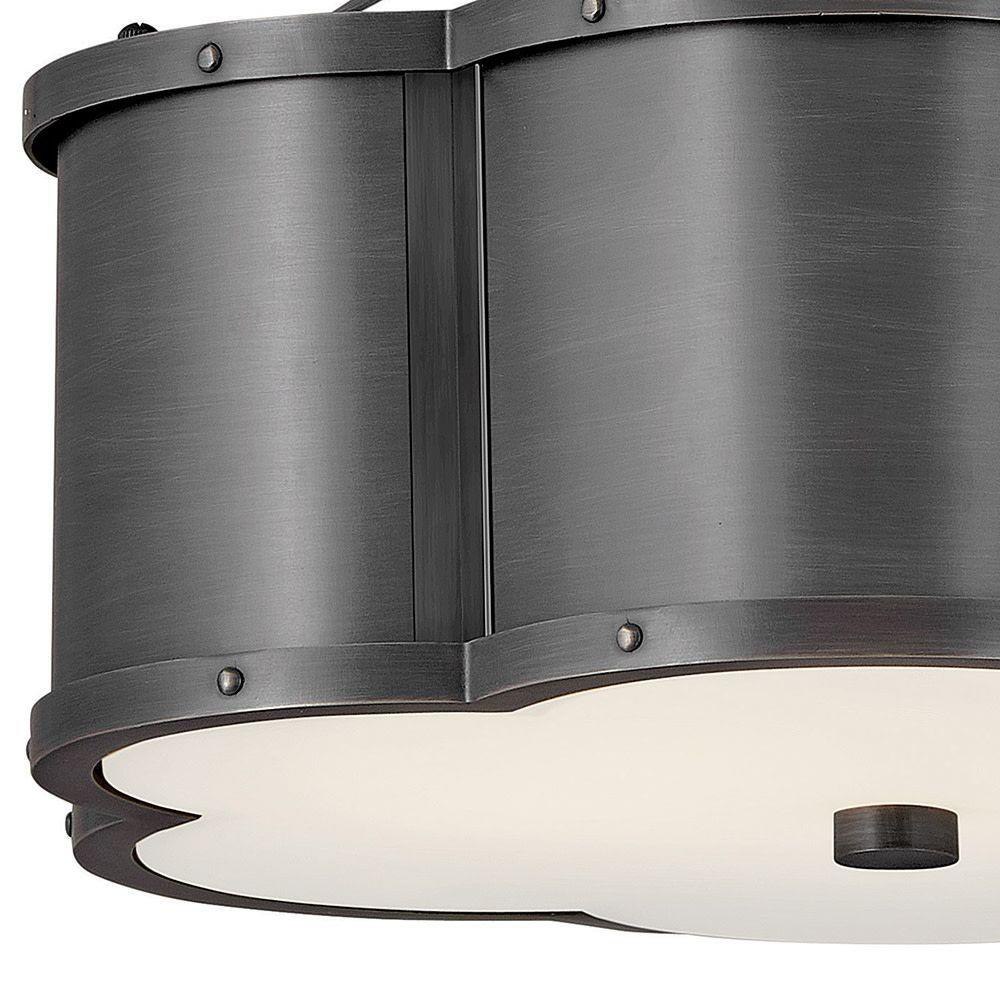 There's everything to love about the classic shape of Chance's semi-flush mounts and pendant. Timeless, symmetrical and classic, its pedigree is an ancient symbol of good luck. Hinkley's design focuses on details such as rivets along the top and bottom cast frame and a functional light source that also illuminates for added sophistication. Chance is available in multiple finish options.