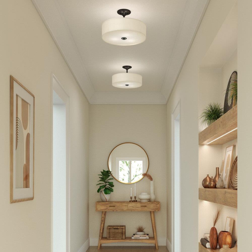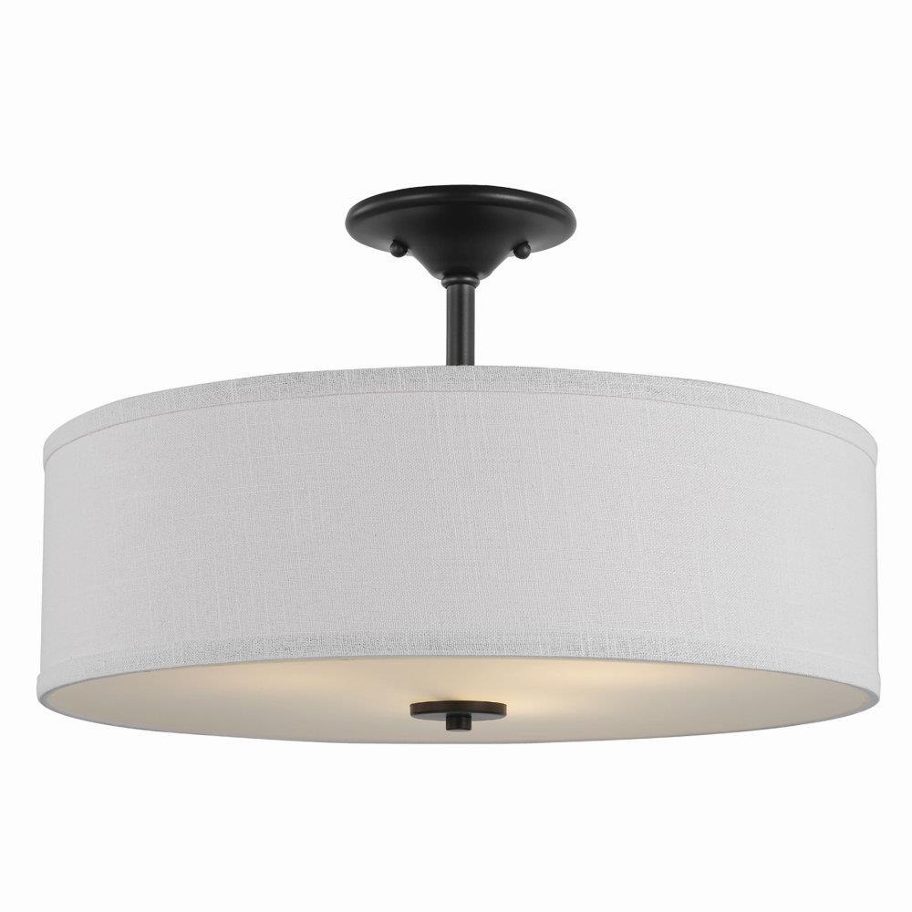 Harkening back to a simpler time, the Inspire Collection Brushed Nickel Three-Light Semi-Flush Mount's timeless demeanor is sure to become a favorite for generations. A round, summer linen shade with an etched glass diffuser steals the show and creates a beautiful muted glow. Understated metal accents complement the light fixture as it fosters a casual, friendly atmosphere.