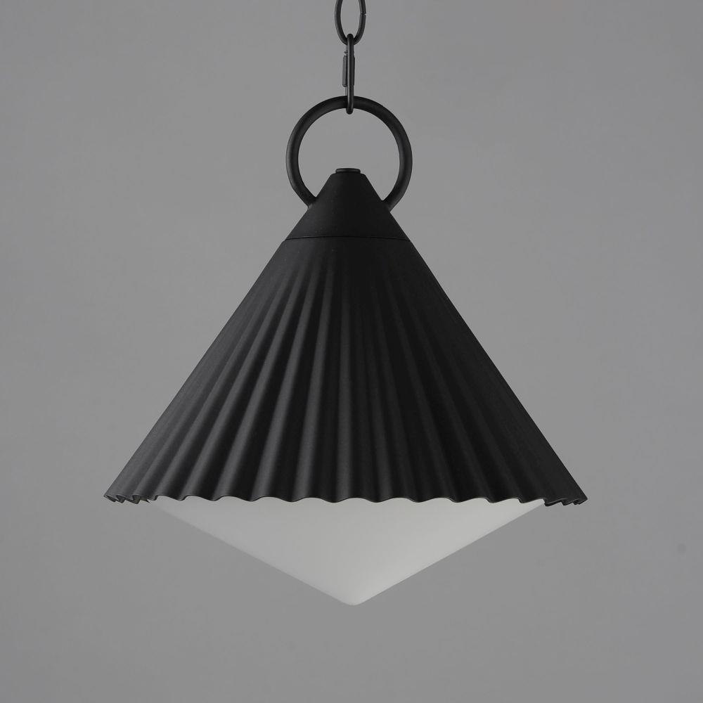 Adding charm to the outdoors, the Odette series features a scalloped pyramid shade suspended from a ring of Die Cast Aluminum. Supported within the shade is an inverse pyramid that peaks out beneath the hem of the aluminum shade marrying the two pyramid forms. Graceful and playful, these outdoor sconces add the designer touch to both indoor and outdoor locations.