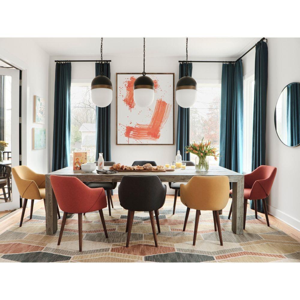 • Characterized by clean lines, sculptural forms, and warm metallic or wood accents, often featuring bold shapes and playful pops of color for a retro yet timeless appeal.