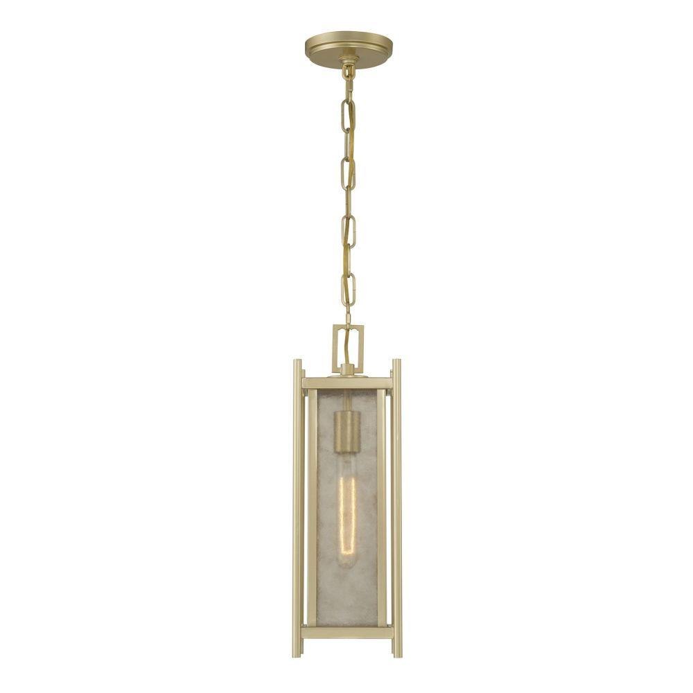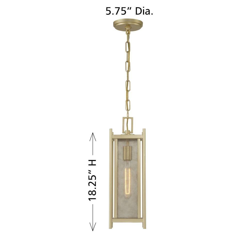 Invite warmth outside with the Savoy House Jacobs 1-light outdoor hanging lantern. The clear mica glass shade sparkles subtly, complemented by the welcoming richness of the Serene Brass finish. Jacobs is 18.25" tall and 5.75" wide. Uses one standard size bulb of up to 60 watts. Bulb not included. Damp area rated.