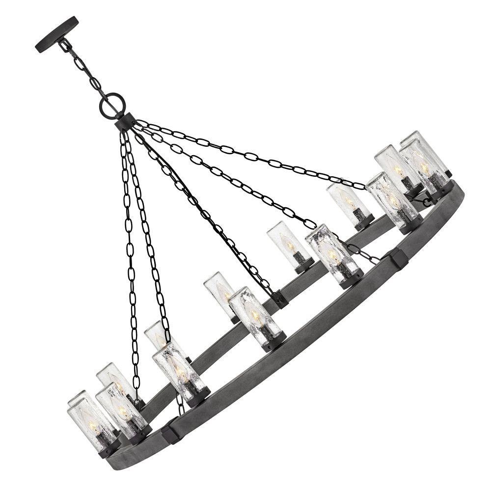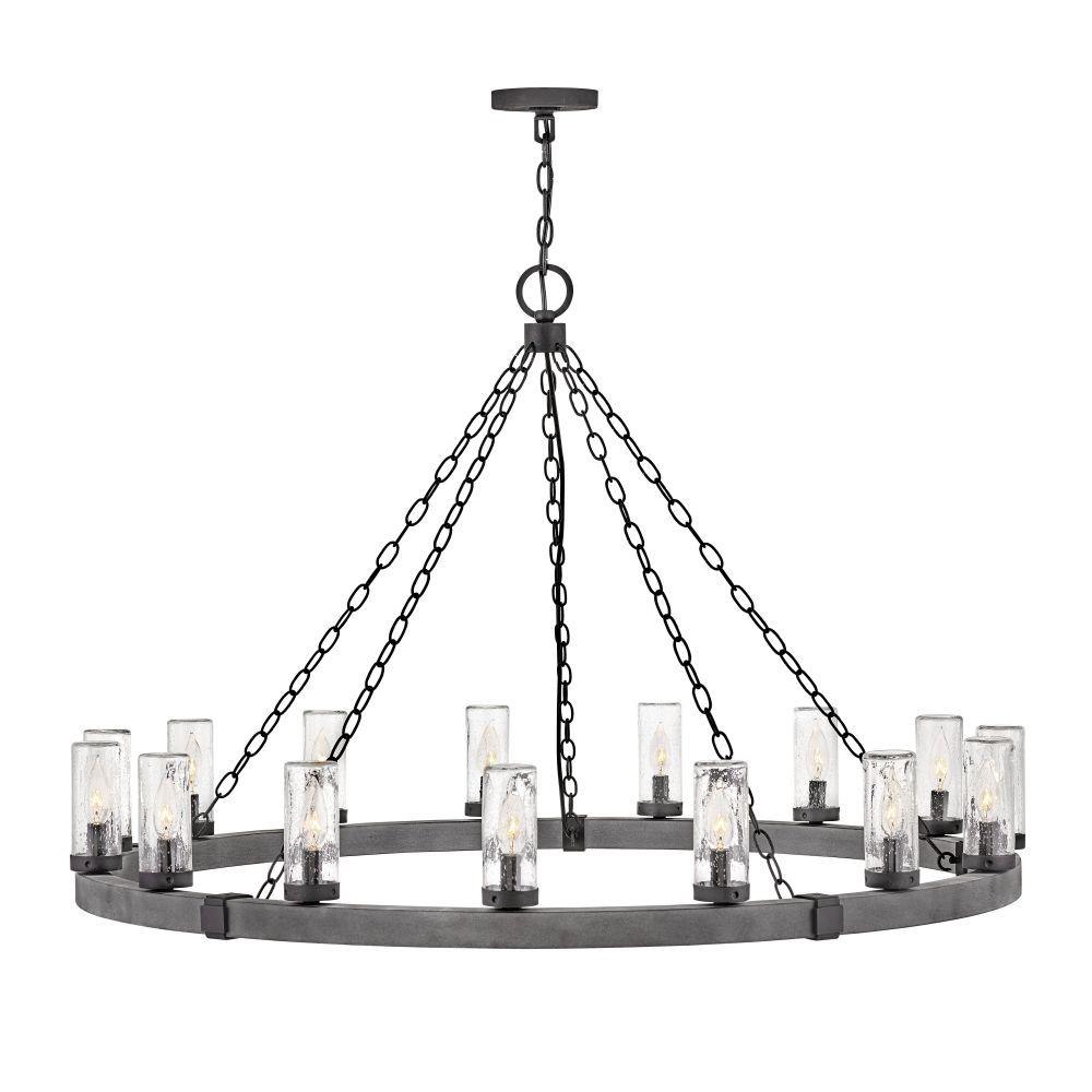 The fresh, rustic design of the Sawyer collection will inject any outdoor living experience with the warm, cozy ambiance of an indoor setting. Constructed with Hinkley's own anti-corrosion coating, Sawyer ensures maximum resiliency and performance in the elements.This chain or cable hung fixture may be installed on any sloped ceiling / Rich gray tone / Suitable for use in wet (outdoor direct rain or sprinkler) locations as defined by NEC and CEC. Meets United States UL Underwriters Laboratories & CSA Canadian Standards Association Product Safety Standards / Rustic elements with bold, refined details complement a variety of facades from farmhouse to contemporary architecture / The stylish Open Air collection includes outdoor-rated chandeliers, pendants and sconces that provide design-conscious solutions to a variety of exterior environments. / 2 year finish warranty / Ideal for vintage filament bulbs (not included)