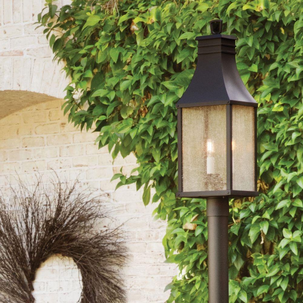 Taking inspiration from an English lantern, Beacon Hill achieves a timeless aesthetic. Part of the Heritage collection, this traditional style features a striking Blackened Copper or Museum Black aluminum frame. The heavily seeded glass pays homage to its Old World charm.