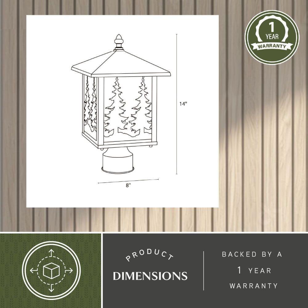 Evoking the spirit of the wilderness, this rustic themed light is clad in a burnished bronze finish and features silhouetted tree imagery atop glowing white tiffany style glass. It is a great choice for a vacation lodge, cabin or suburban home and will complement a variety of home styles: anywhere you want to bring an element of nature. This post light mounts on a 3 inch diameter post (not included). Ideal for illuminating your yard, driveway, or any other area of your home.