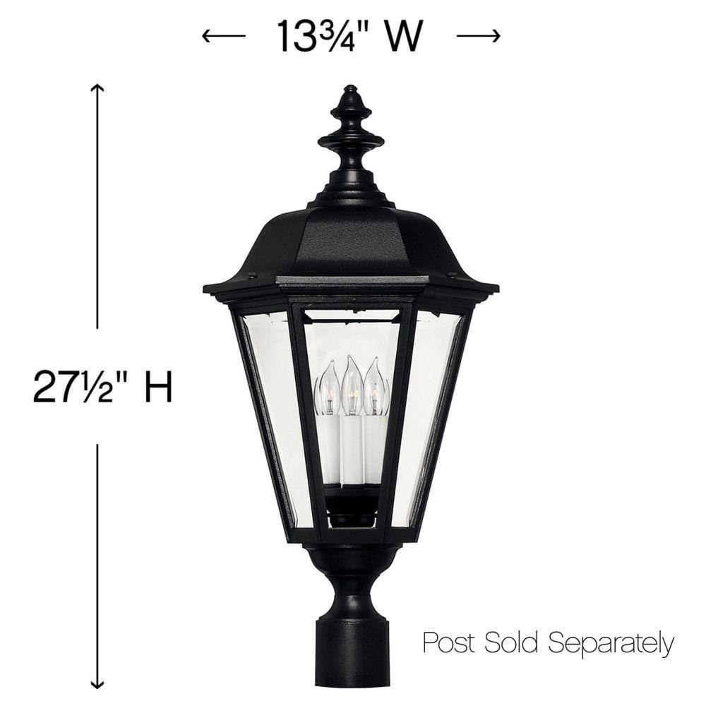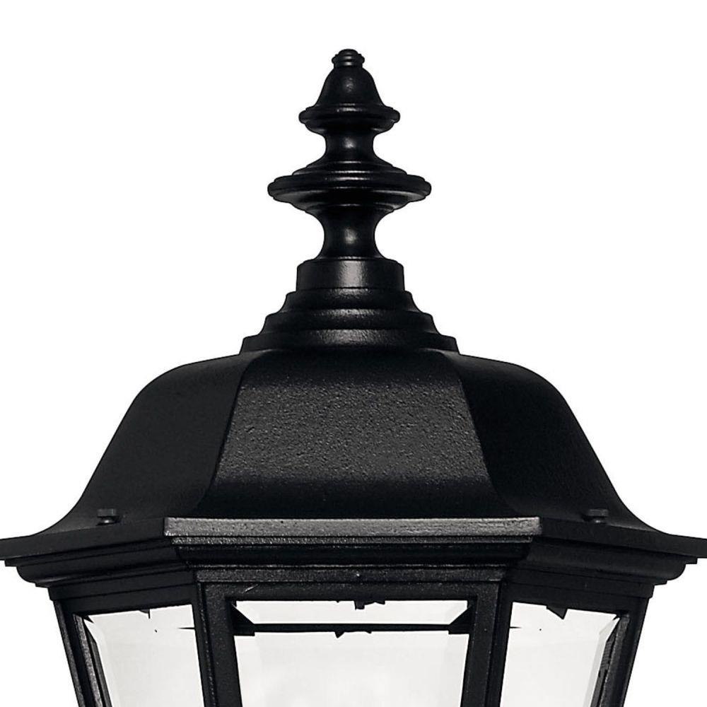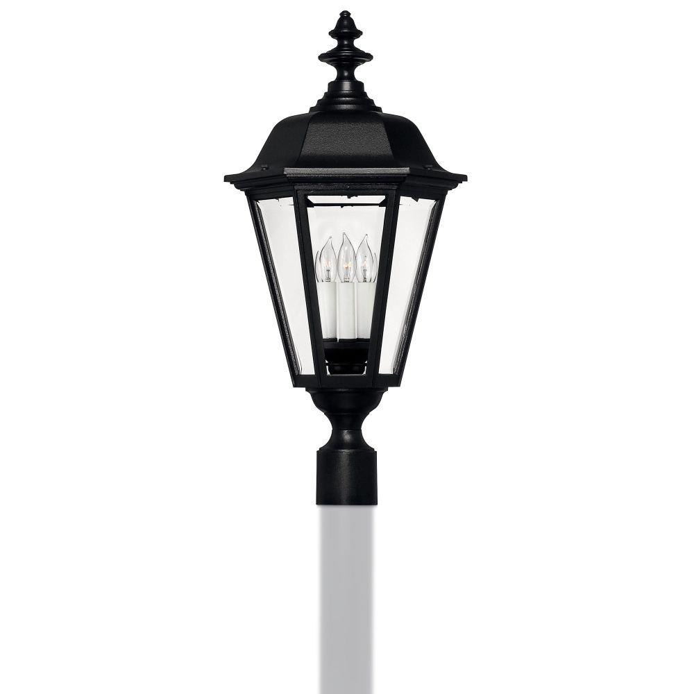 Manor House is a classic lantern design featuring durable cast aluminum, clear beveled glass panels and a bold Black finish. Select-A-Lite options come standard with both candelabra and medium based sockets.Our Estate Collections boast a breadth of fixtures defined by coordinating composition, enduring architecture, and time-honored craftsmanship, designed to meet the needs of expansive properties with extended outdoor living spaces. From the entrance of your driveway to the depths of your backyard, these collections provide cohesive design for stately exteriors. / Suitable for use in wet (outdoor direct rain or sprinkler) locations as defined by NEC and CEC. Meets United States UL Underwriters Laboratories & CSA Canadian Standards Association Product Safety Standards / Classic lines and heritage details complement traditional architecture / Striking black finish enhances design / 2 year finish warranty / Fixture ships with sockets that can either accept candelabra or medium base bulbs.