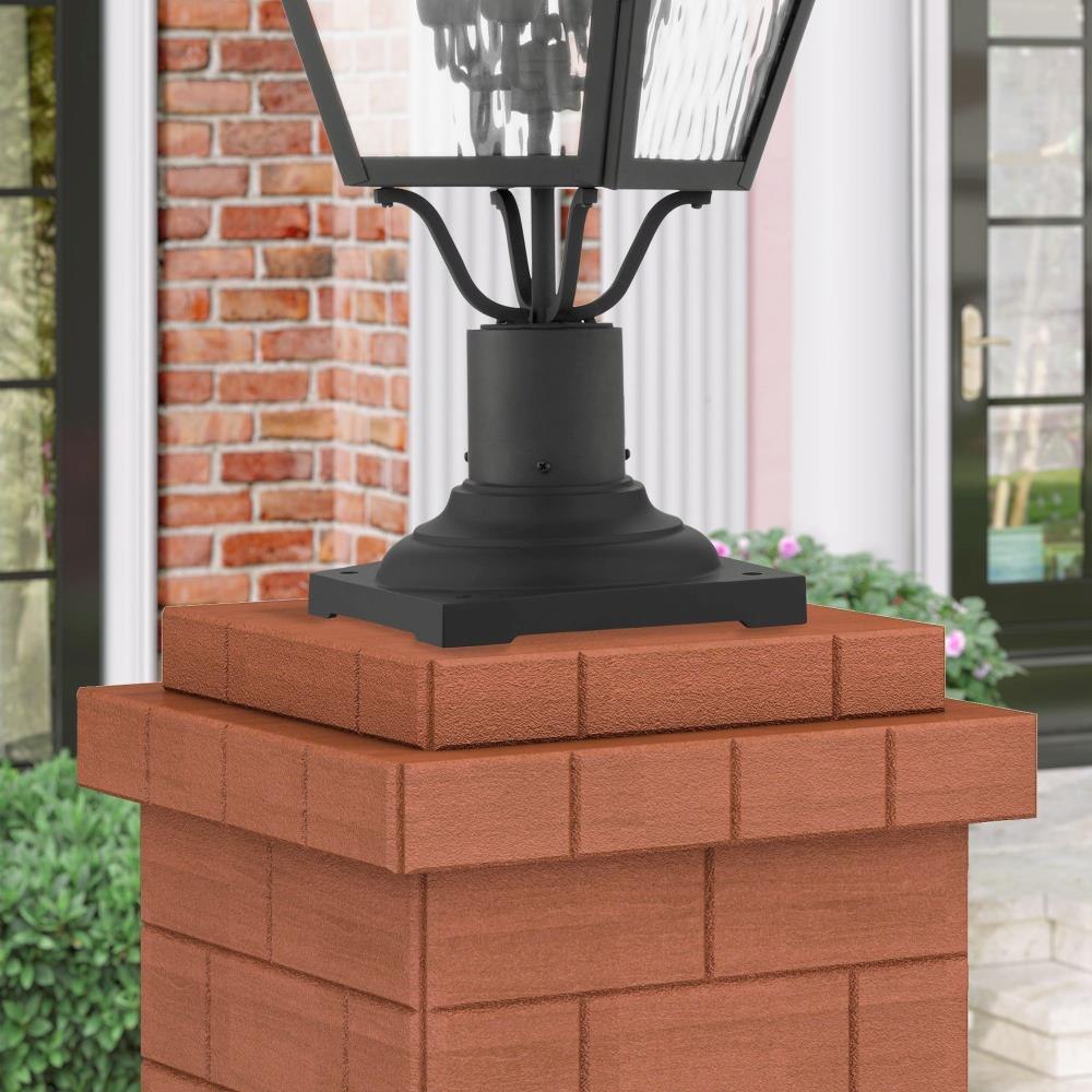 This pier mount adapter is engineered to accommodate compatible post lanterns (not included), which conveniently slip over the mount to create a clean, streamlined appearance. The design simplifies installation while maintaining a secure fit, ideal for upgrading existing outdoor lighting setups.