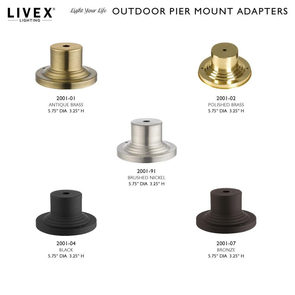 Enhance the installation of your outdoor lighting with the Outdoor Pier Mount Adaptor, designed specifically for post lanterns in pier mount applications. Measuring 6 inches wide by 3.25 inches high, this adaptor provides a precise fit that allows the post lantern (sold separately) to slip securely over the mount, resulting in a clean and streamlined aesthetic.